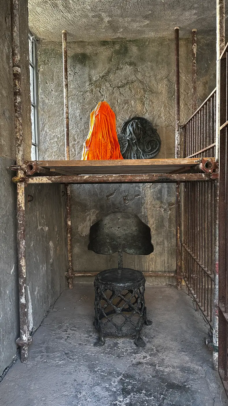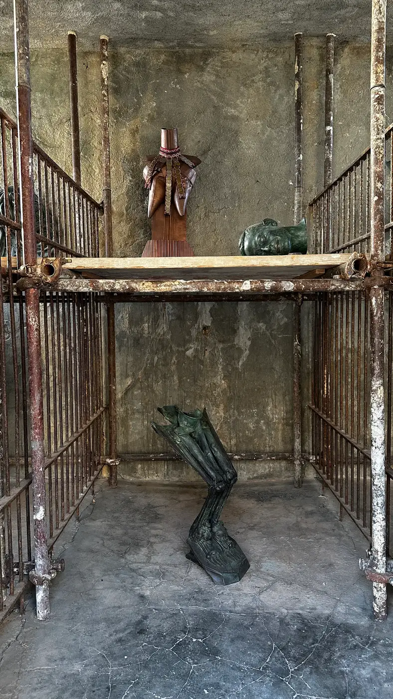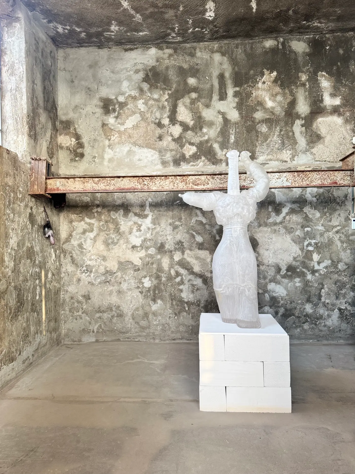 The Slaughterhouse has long been a space where contemporary art collides with this charged backdrop, and Ursuța’s installation feels inevitable here, like a ruin revealed at low tide.