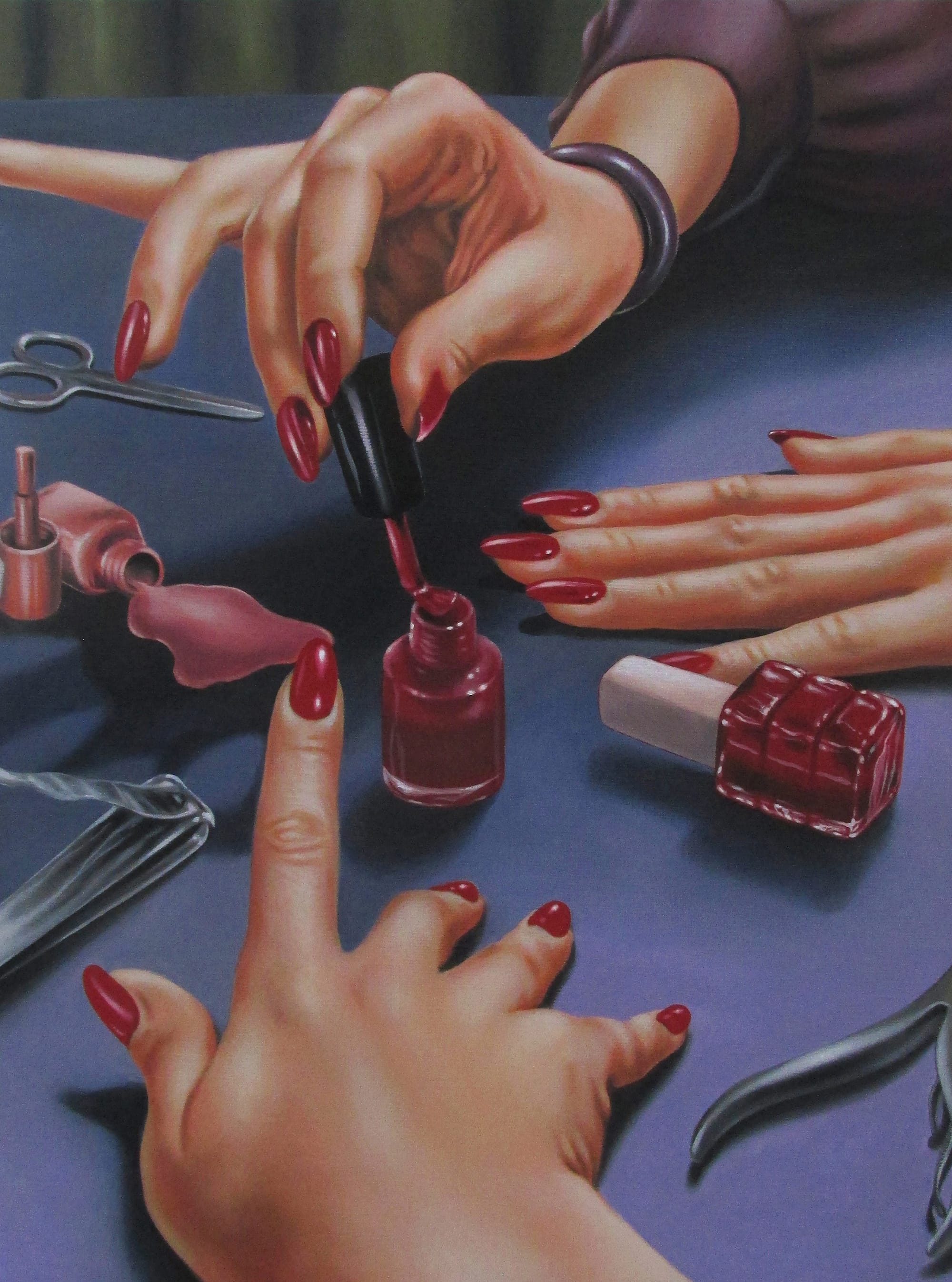 My painting practice is in constant dialogue with the Italian pictorial tradition. My paintings, in line with the technique of the Renaissance masters, are created through an elaborate process that consists of superimposing multiple layers of color, which give the pictorial rendering a sensual and realistic effect.
