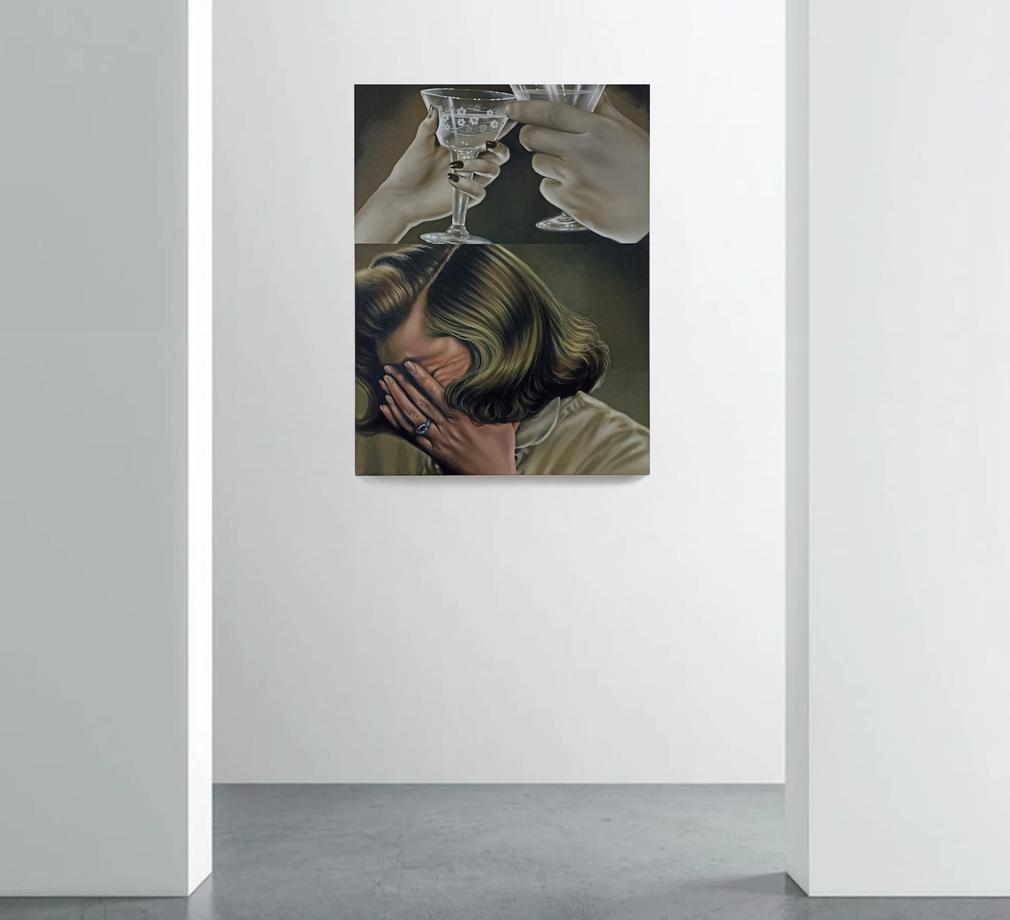 References to Renaissance layering techniques sit next to reflections on contemporary visibility, creating a practice that resists both nostalgia and noise.