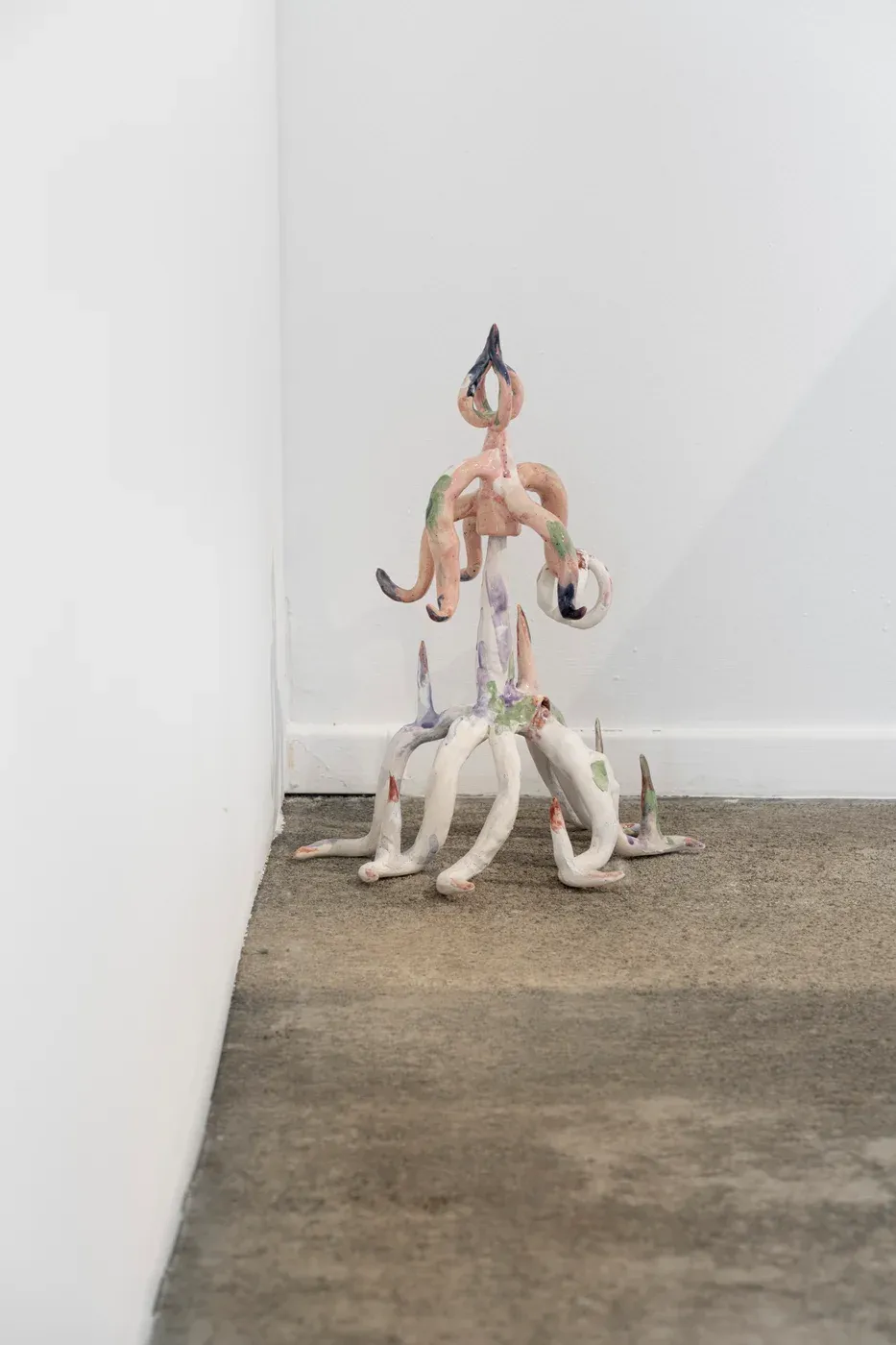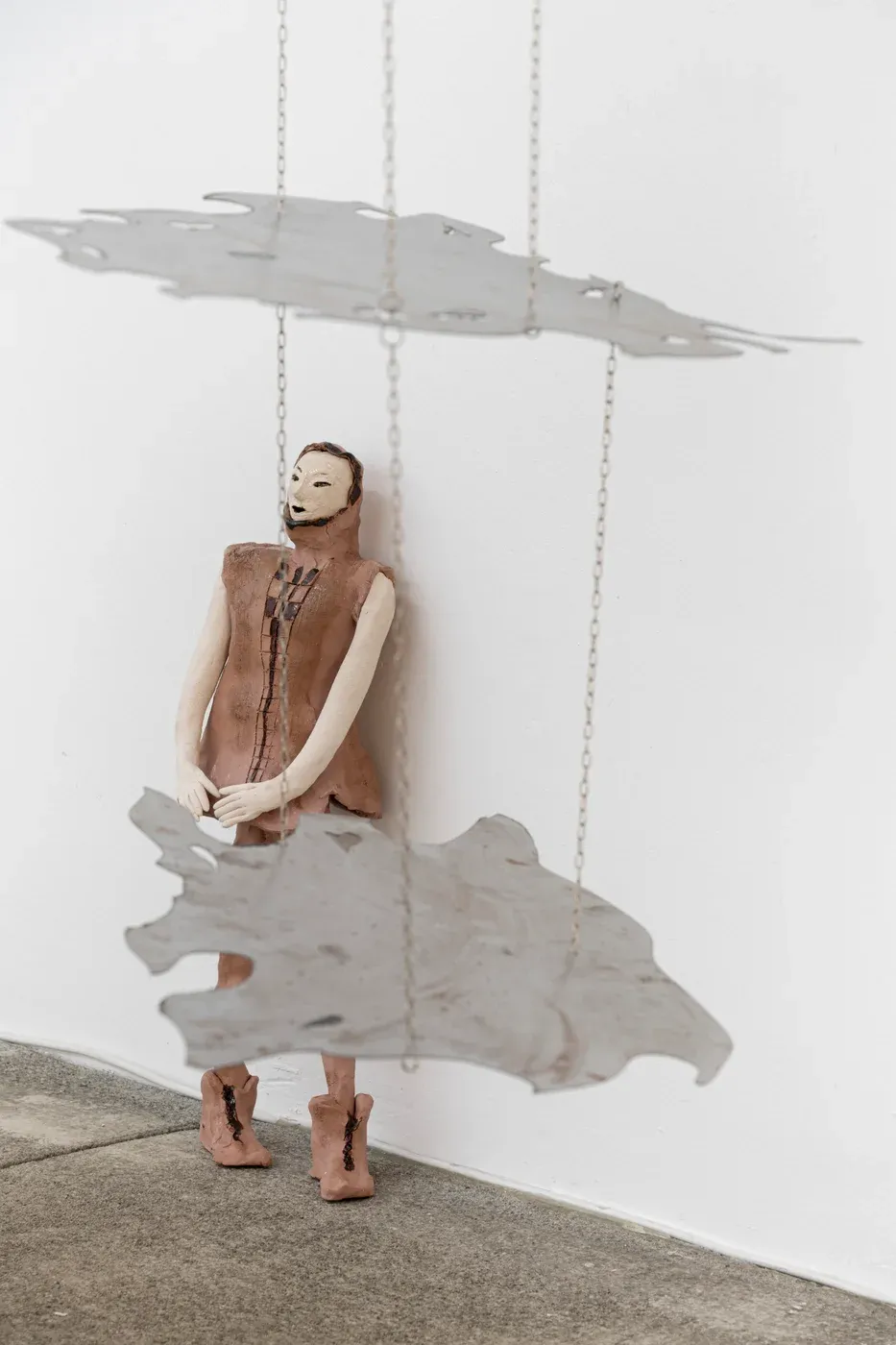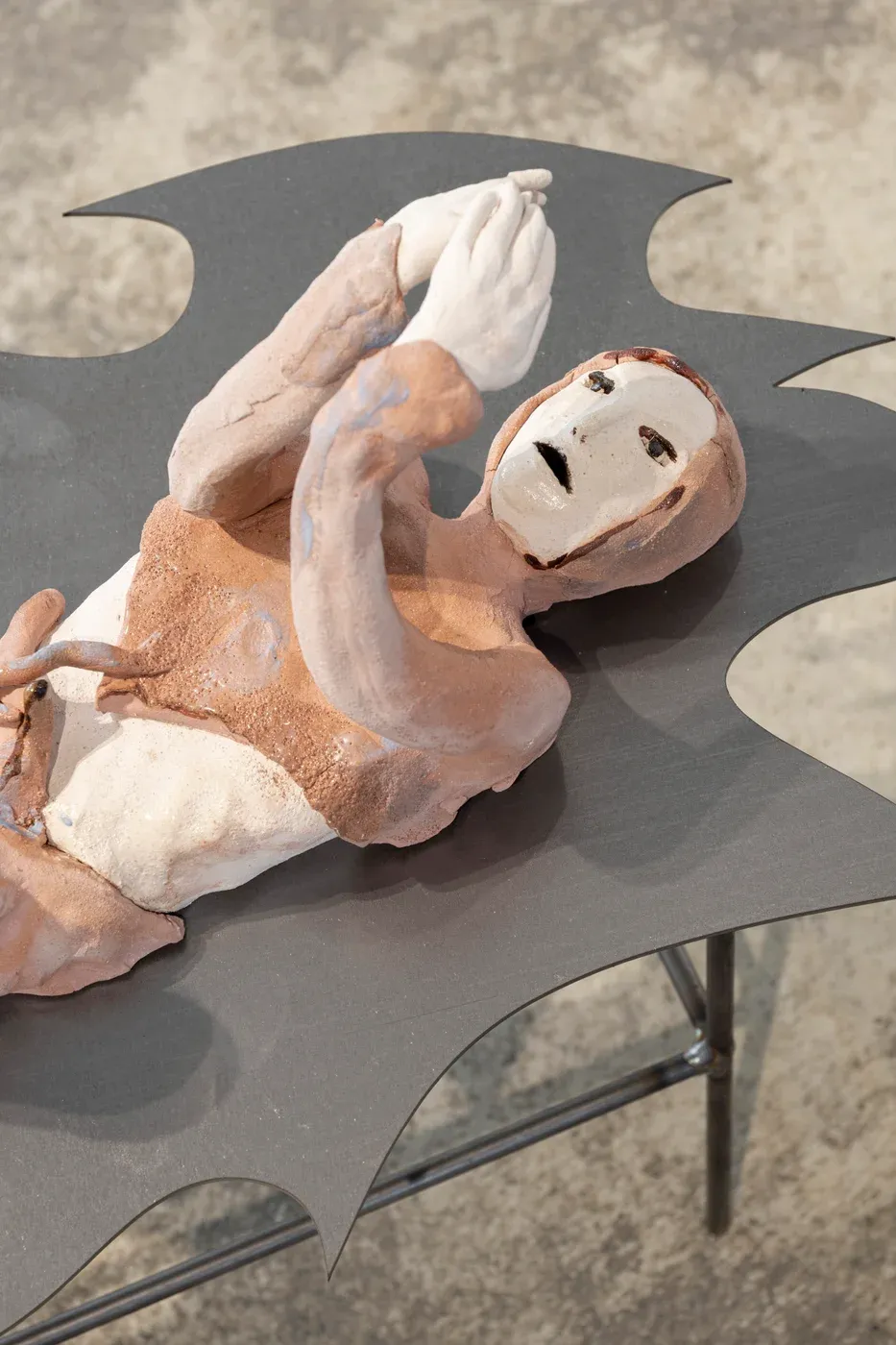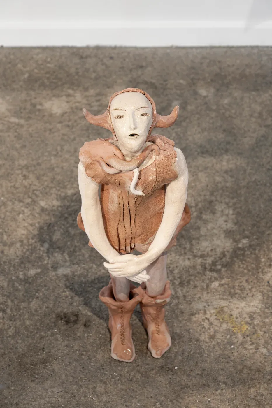 Her figurative ceramics explore issues like power dynamics and feminist theory, infusing personal mythology with her experience as a female artist with migratory roots.