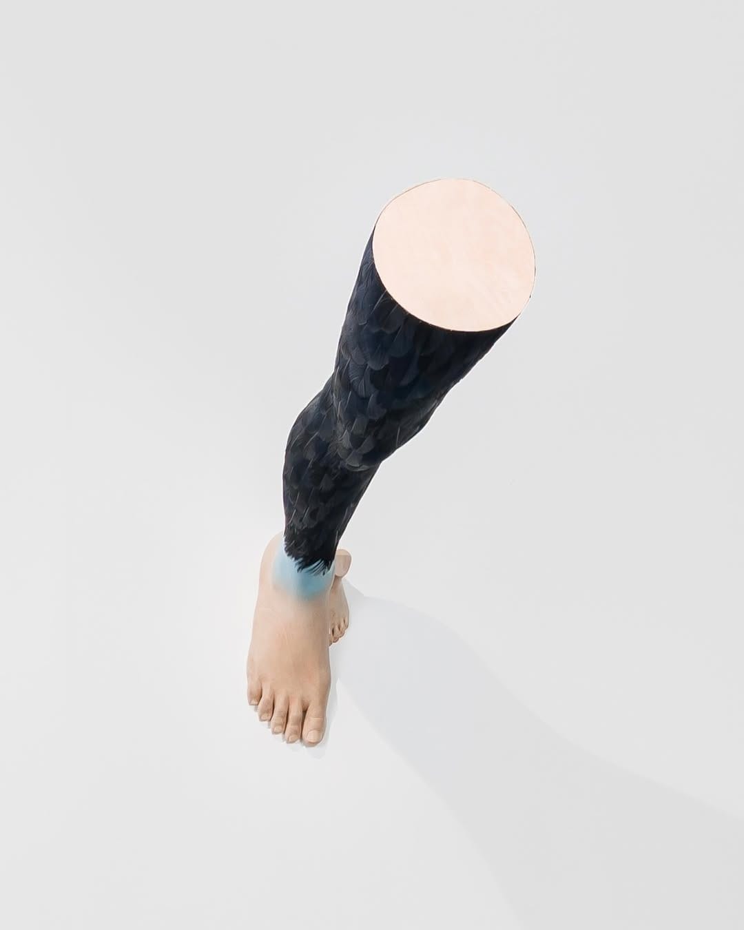 Senoner’s figures, often interwoven with organic materials like feathers, lichens, and beeswax, reflect on metamorphosis, memory, and the passing of time.