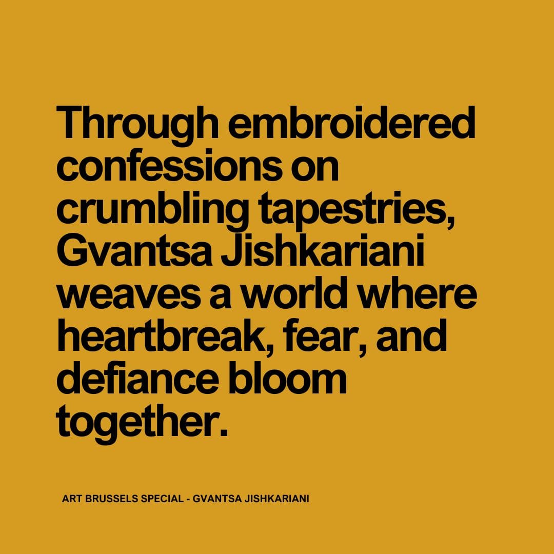 Jishkariani’s practice bridges traditional textile craft with sharp, fearless commentary on cultural, personal, and emotional landscapes.