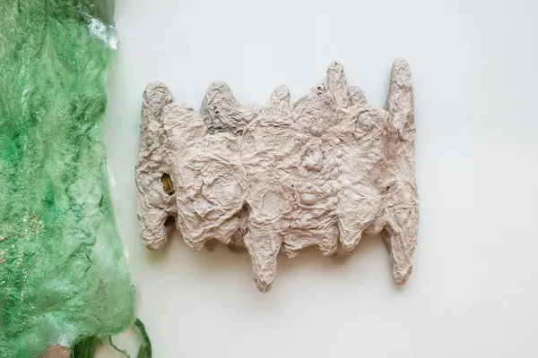 His works seem almost archaeological, relics of inner worlds, where transformation is inevitable and memory is preserved in every grain and texture.