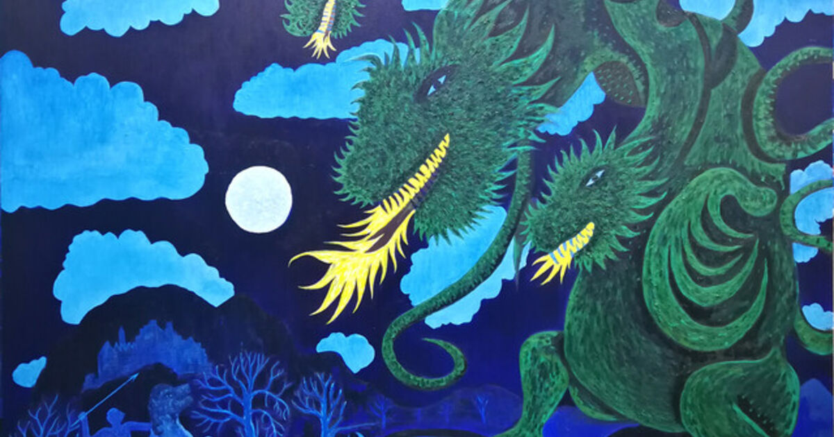 I find ancient tales, myths, narratives, religious texts, folklore, cinema, literature and music all equally inform the direction the paintings move in.