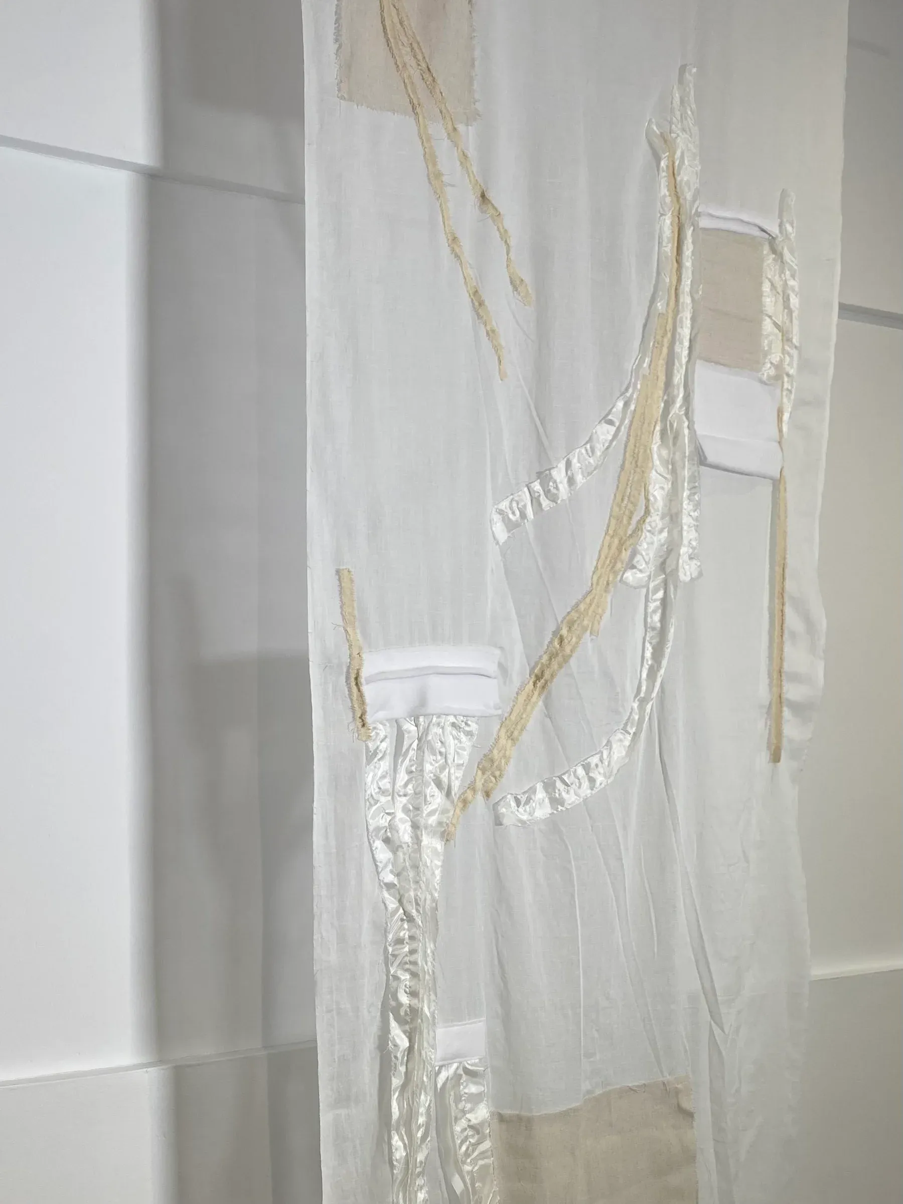 Avraam Hirodontis: Vestiges I (detail views), cheesecloth, canvas fabric, polyester, linen and fusible fleece, image courtesy of the artist.