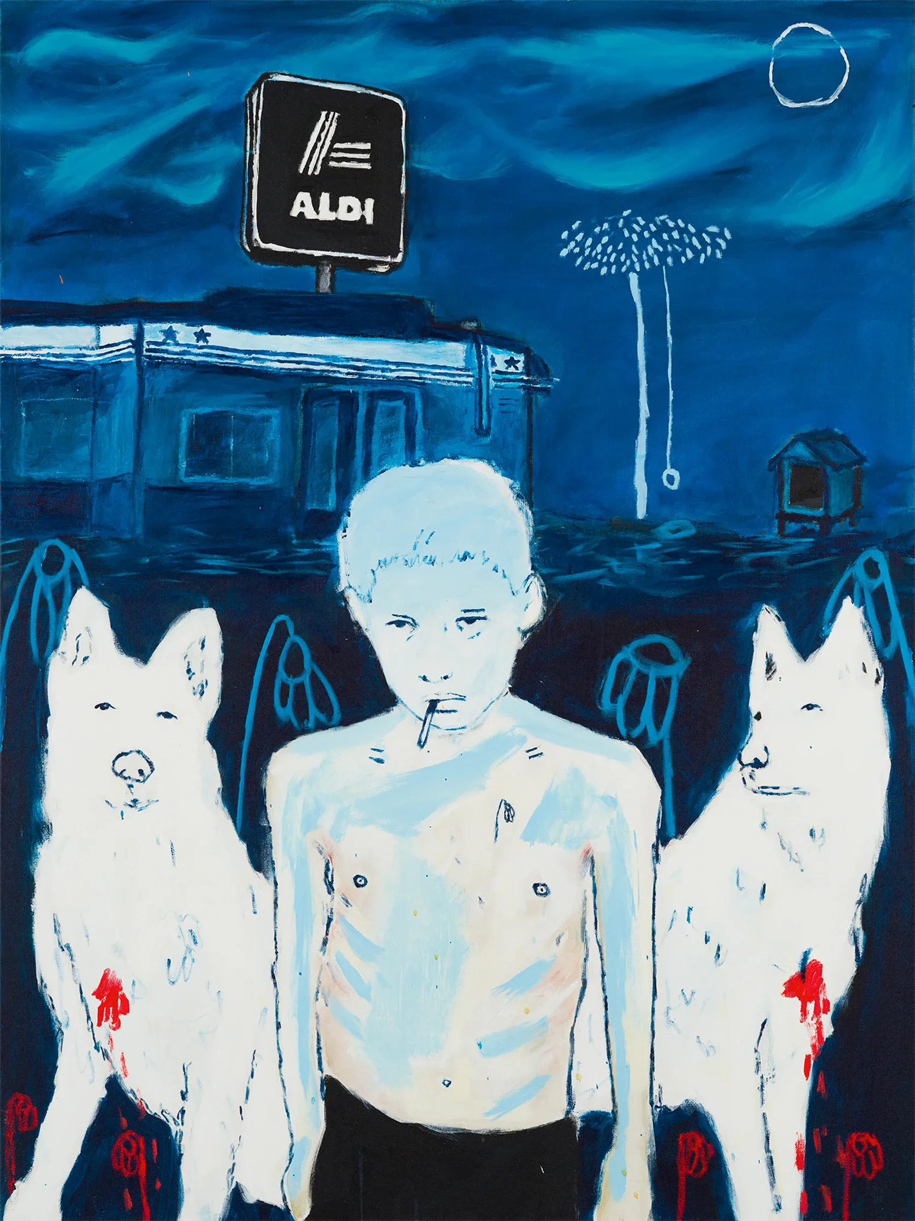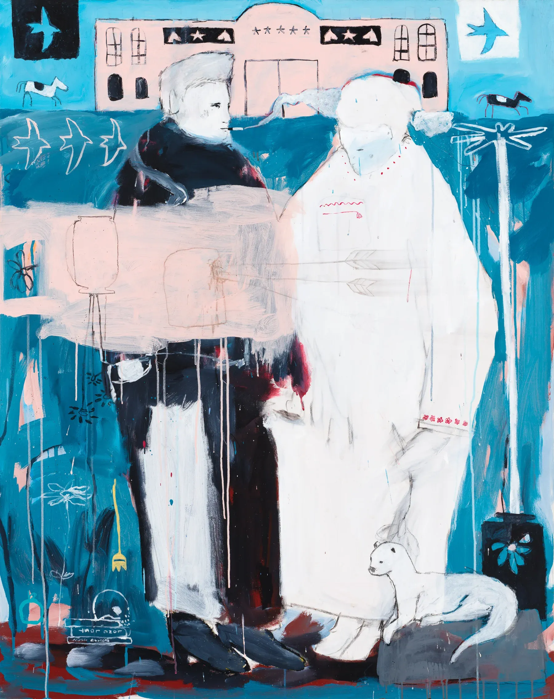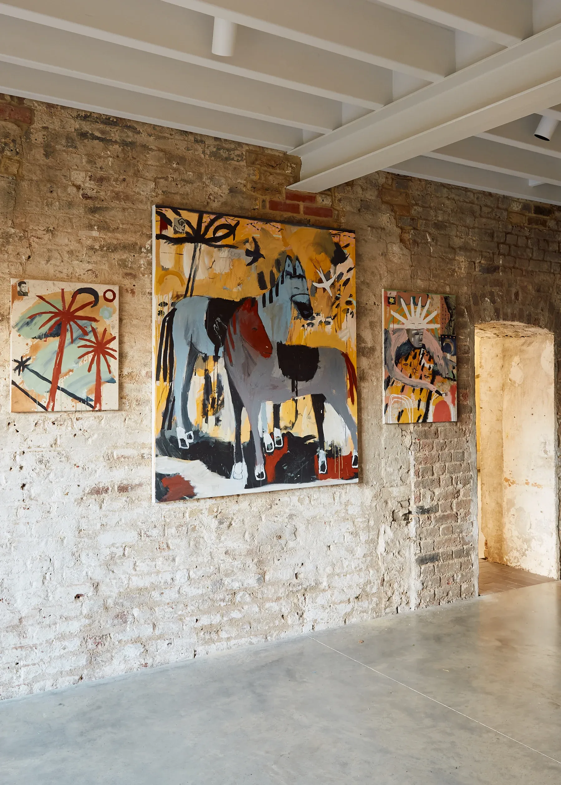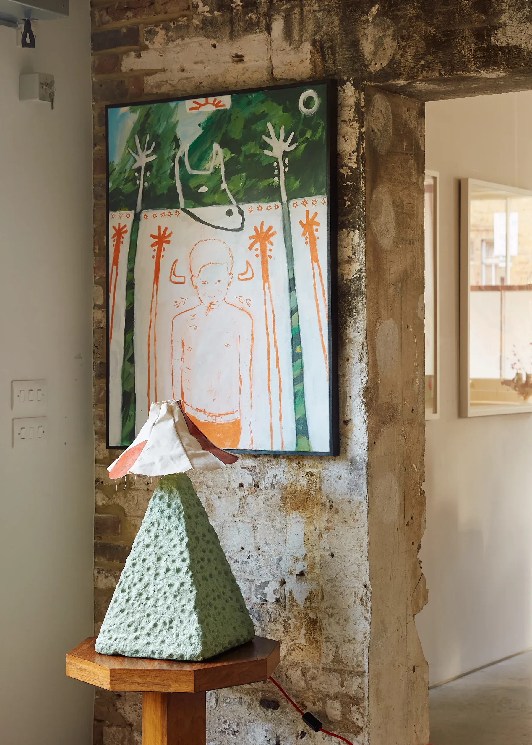 These shapes link one canvas to the next, tying humour to grief and instinct to ritual.