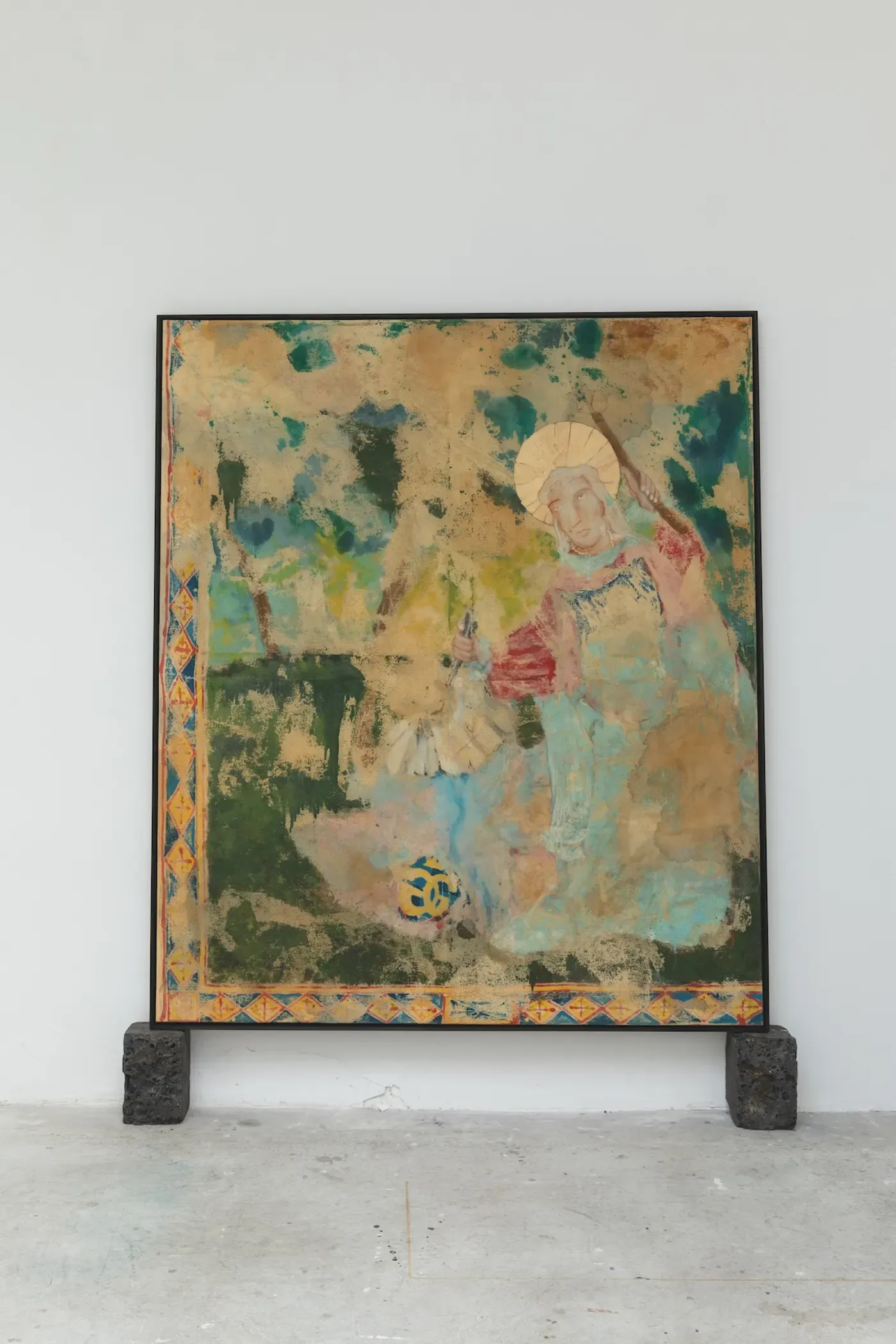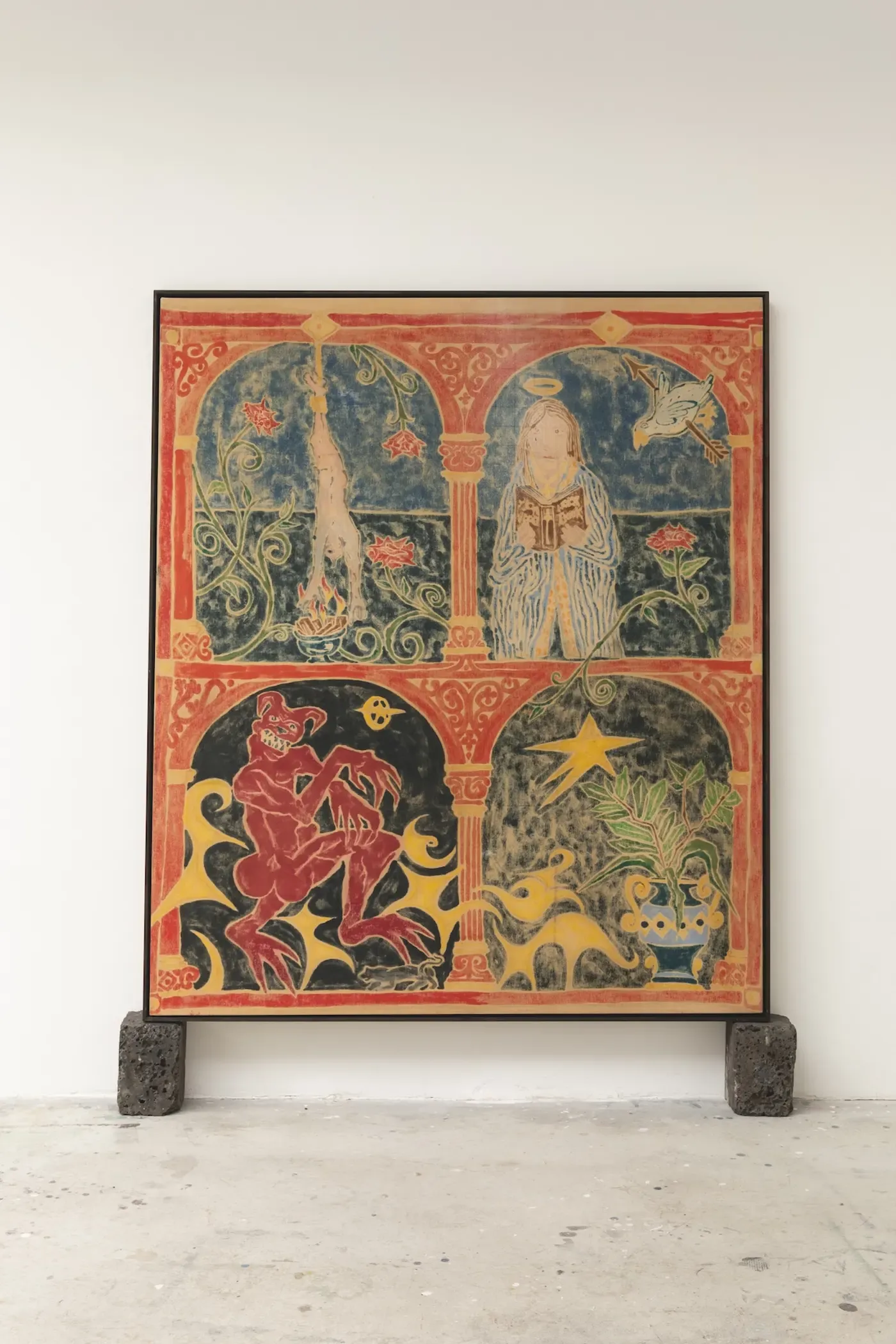 By combining medieval visual logic with contemporary materials and references, his work reflects on memory, belief, and institutional power without fixing them in a single viewpoint. This openness allows the paintings to remain readable across different contexts and moments, resisting immediacy in favor of duration.