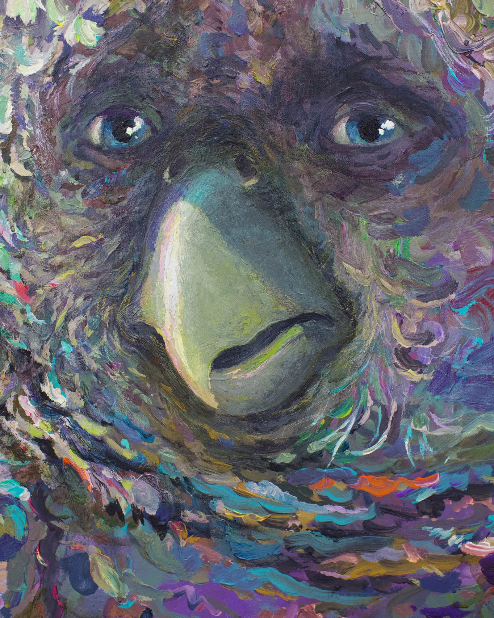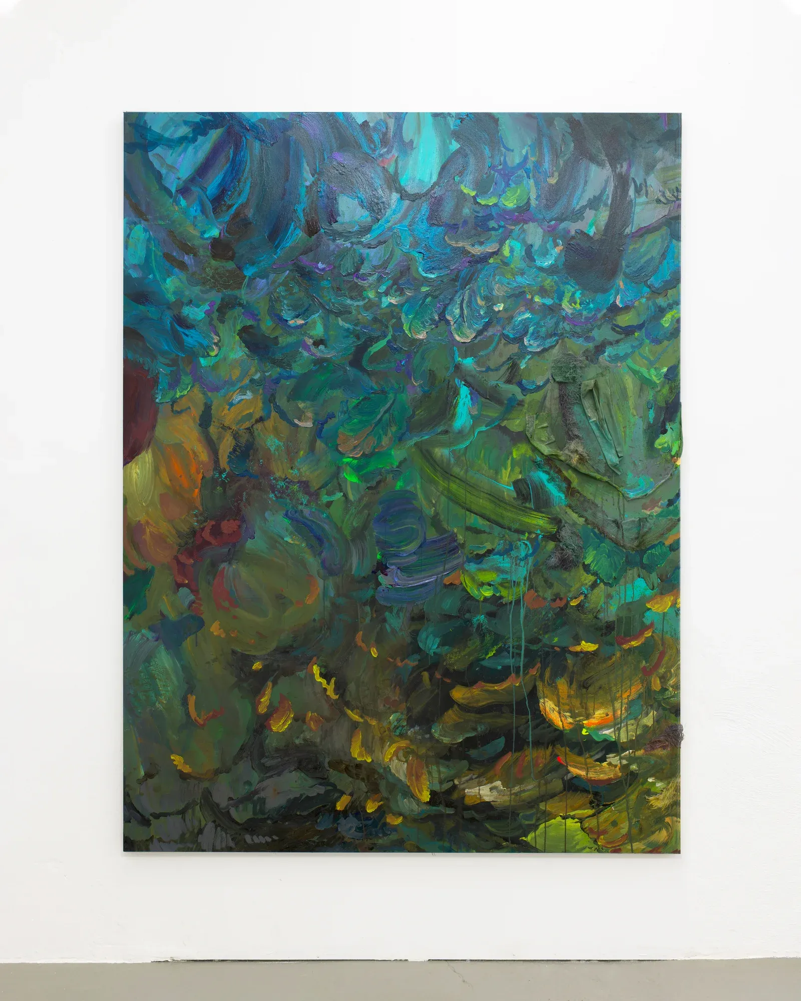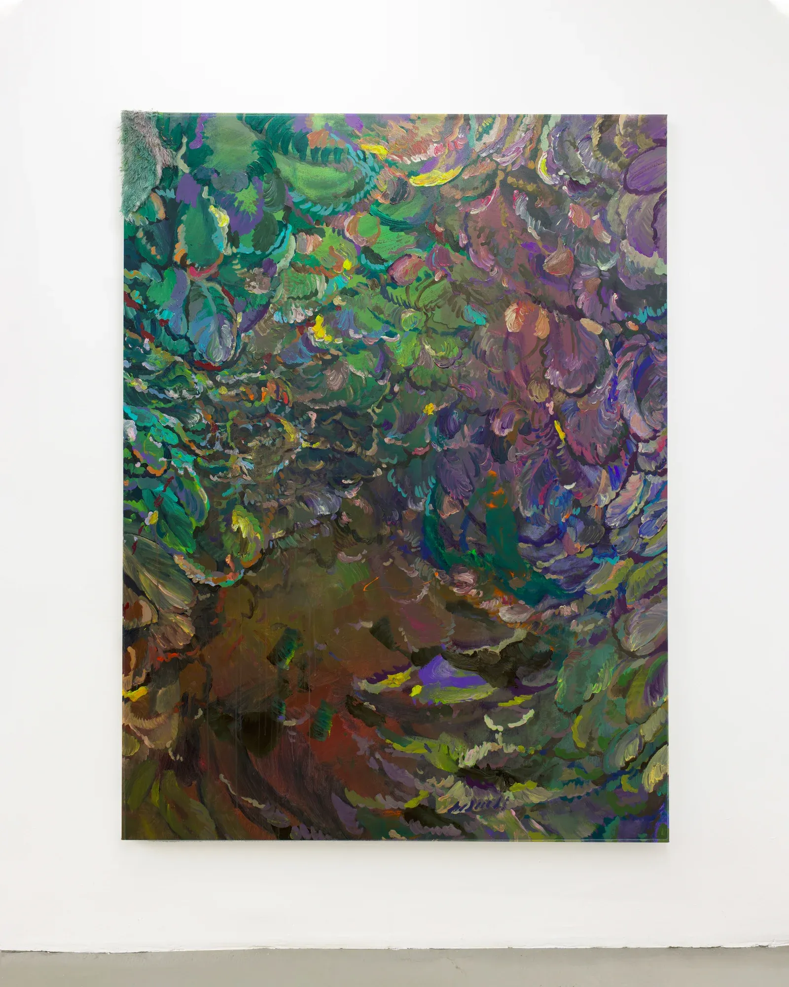 Brushstrokes remain legible, sometimes clashing or collapsing into one another. Color behaves less as description and more as event, changing with light, distance, and movement. Painting becomes a physical encounter, something to be navigated rather than simply viewed.