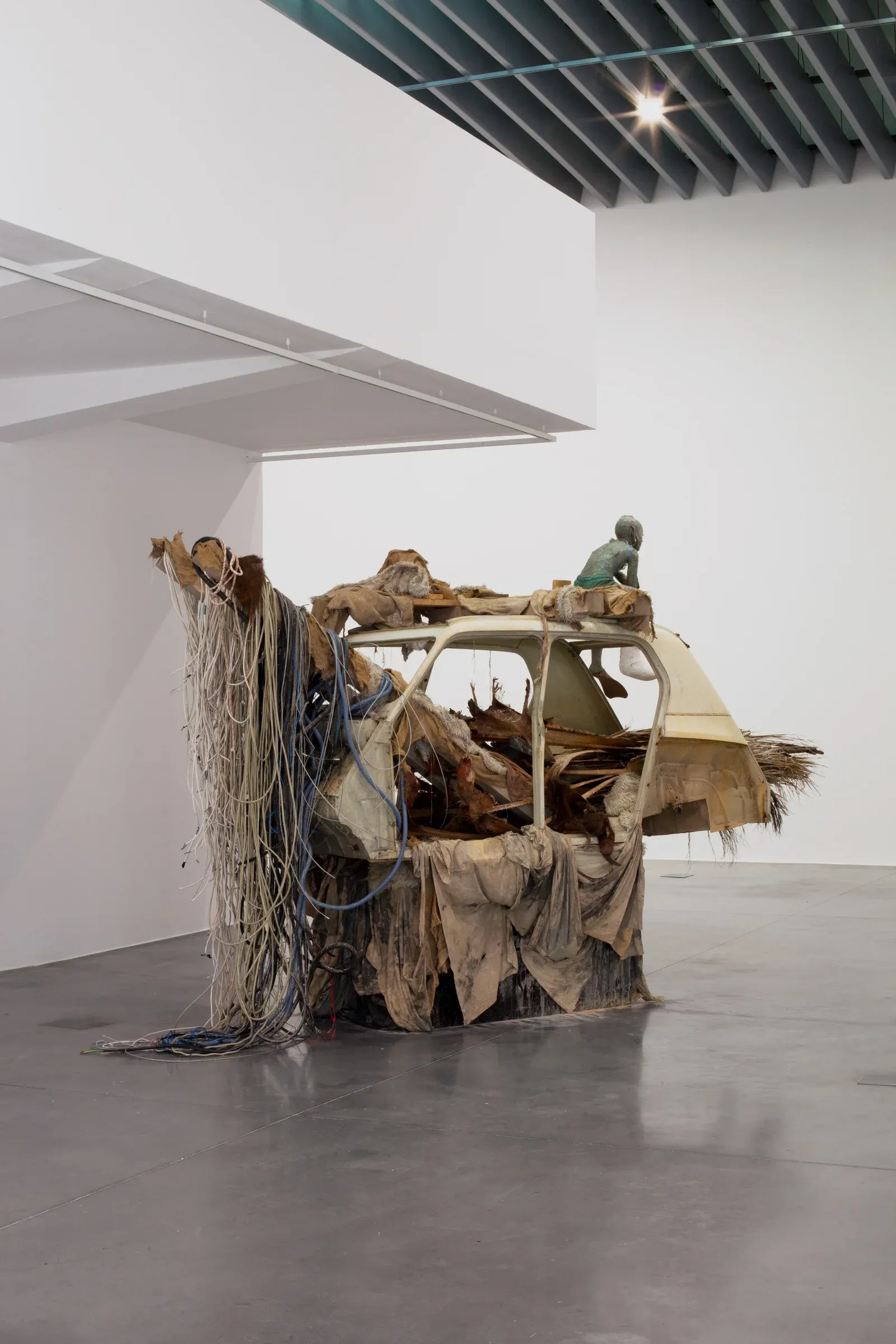 Across Gabriele’s work, bodies appear slightly out of sync with their surroundings. Hybrids, costumed figures, and anthropomorphic presences populate installations and images, never fully absorbed by the spaces they inhabit.