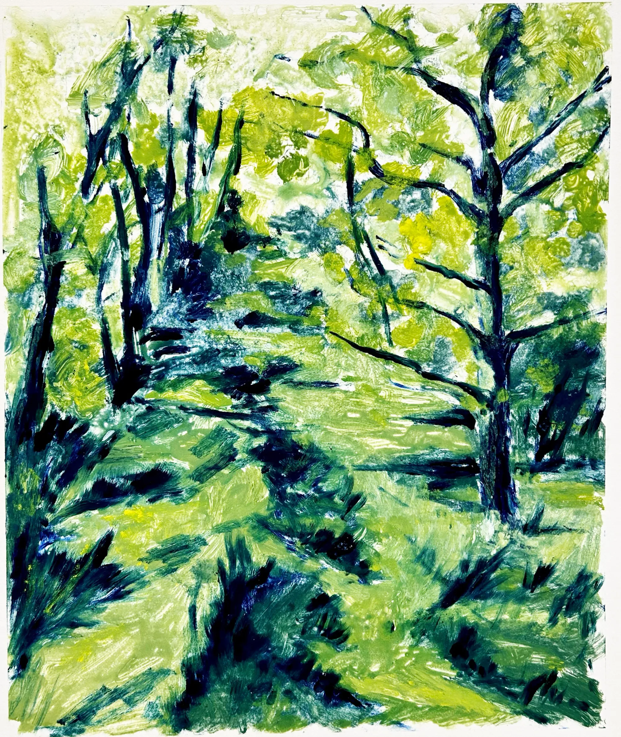 Based in Berlin since 2019, she builds a practice across painting, printmaking, writing, and music, each medium feeding the same restlessness.