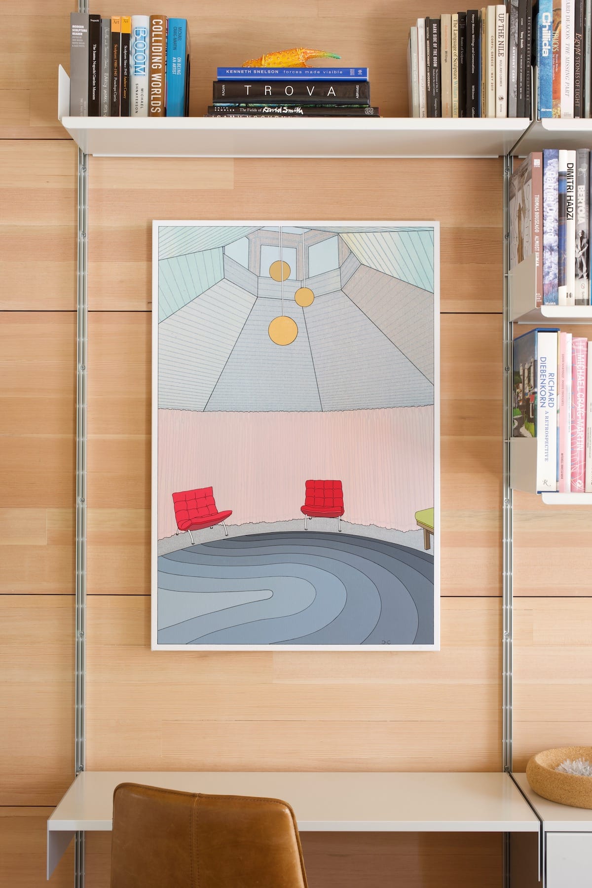 Two works by Chris Cassimatis installed in a private residence: Skyline and NW Hilltop. Acrylic on canvas over panel. Image Courtesy of the Artist.