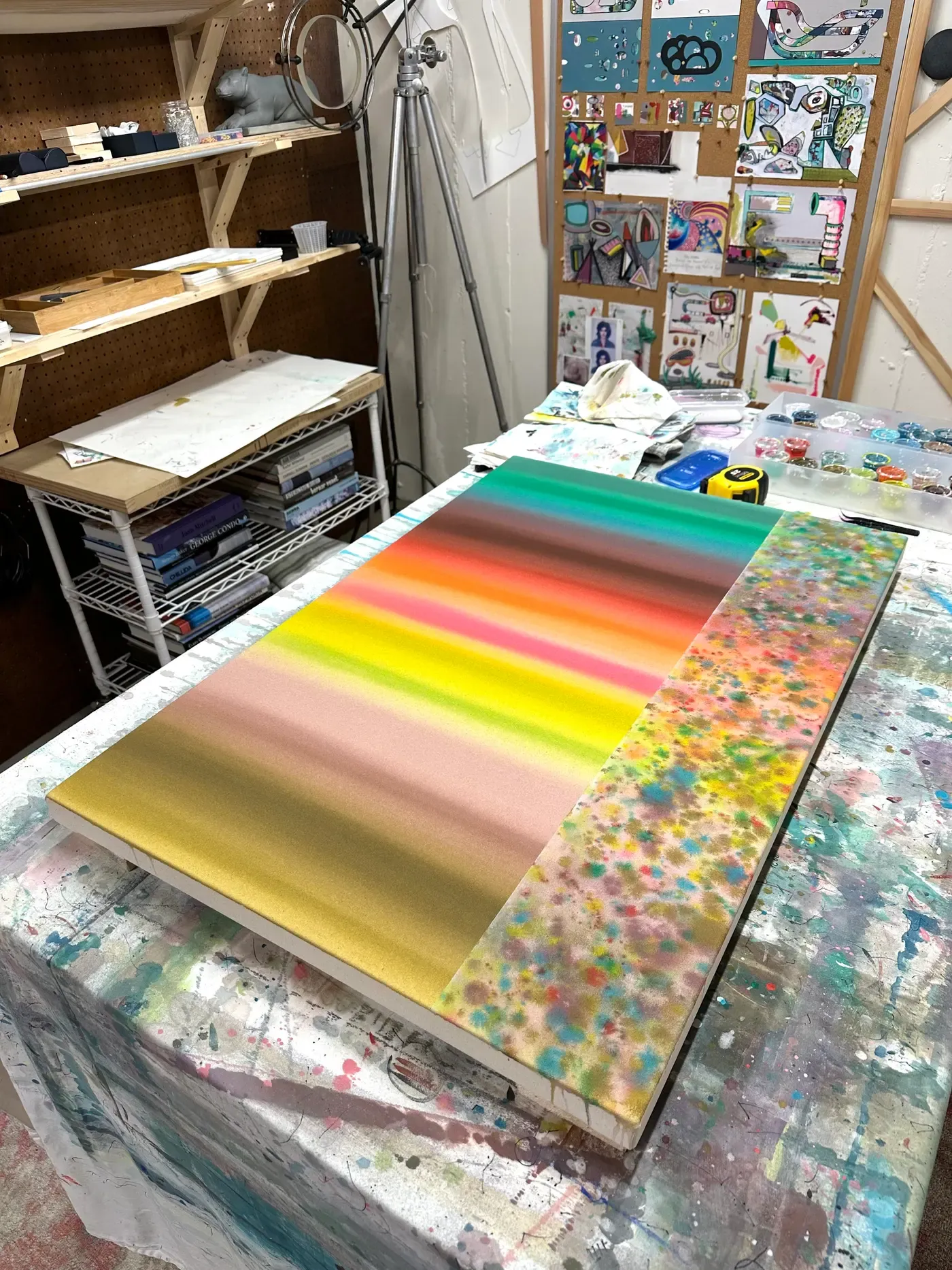 I tend to work on one painting at a time, and the studio gets a little more chaotic over time. However, I won’t start something new without completely resetting my space.