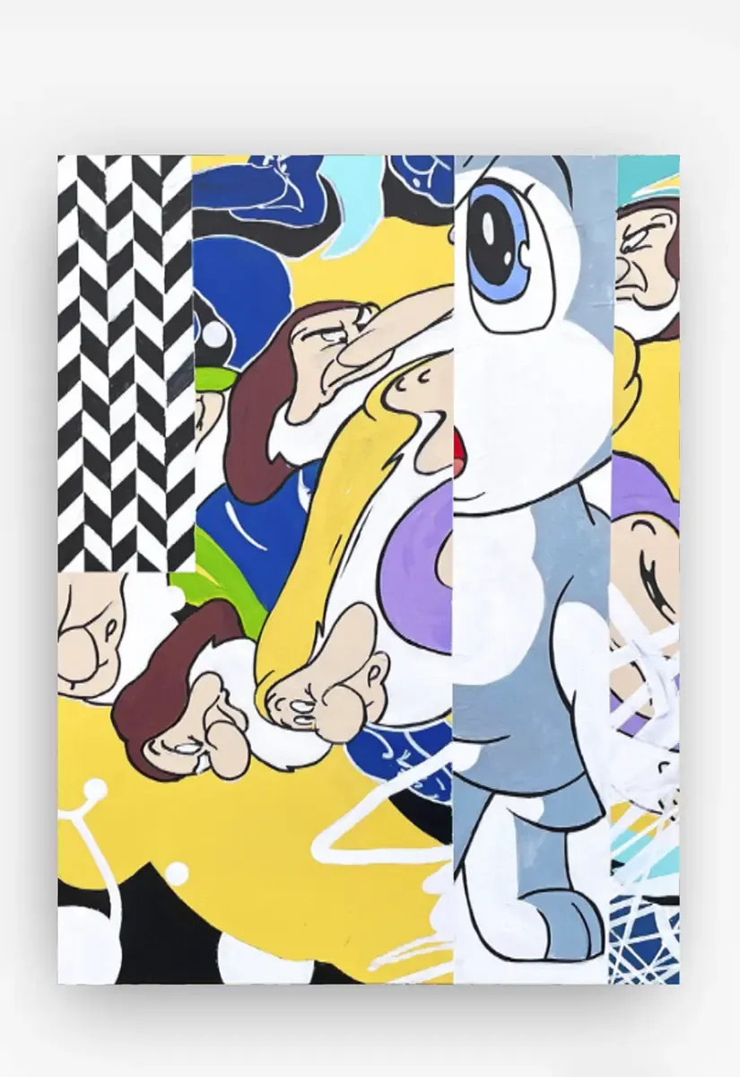 Rosado's works often draw from the vast repository of contemporary society images available on the internet, blending them with street art elements to comment on modern life's complexity and fragmentation.