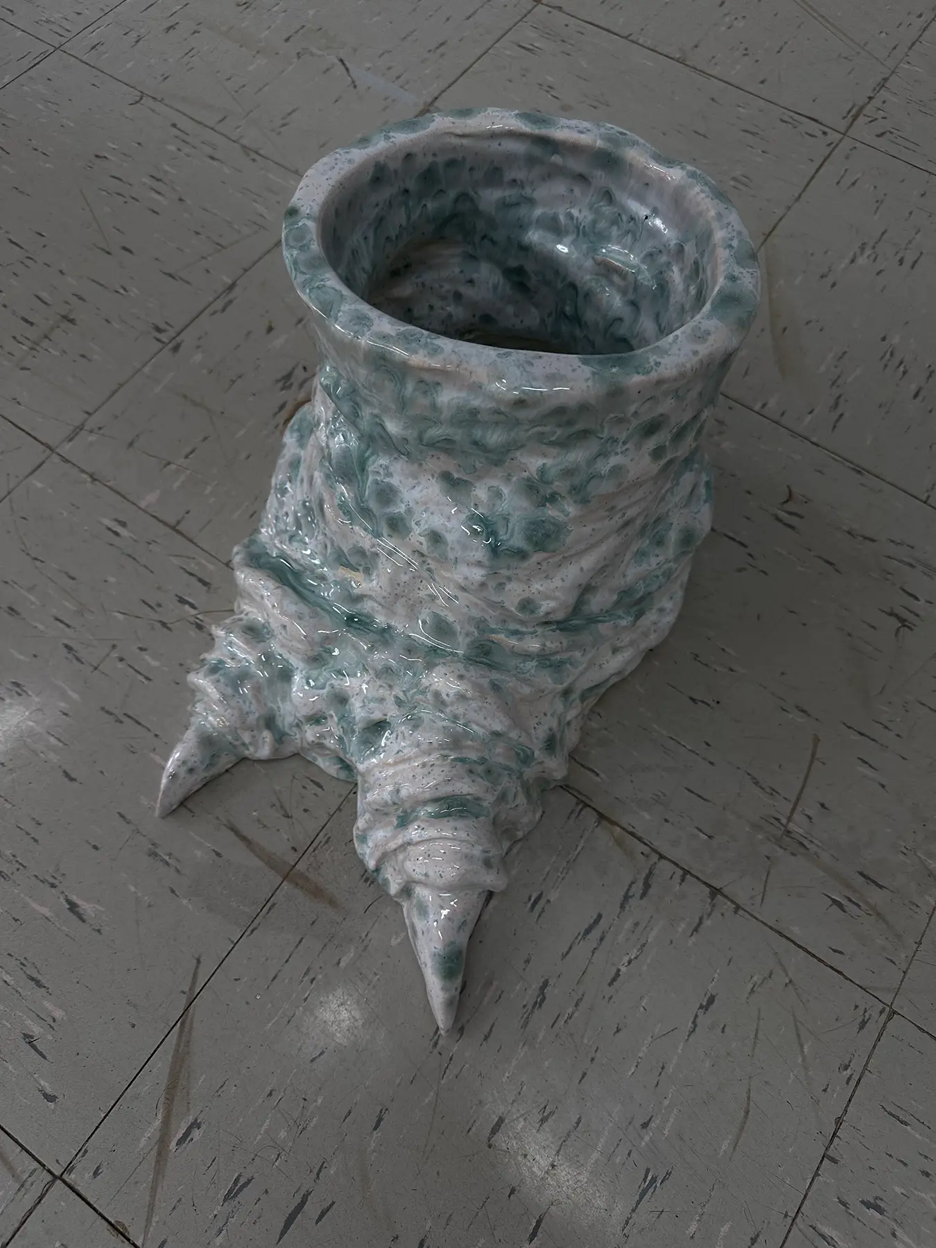 Her unique approach manipulates the ceramic surface to reflect the stratigraphy of the earth, embedding her pieces with a sense of timelessness and human presence.