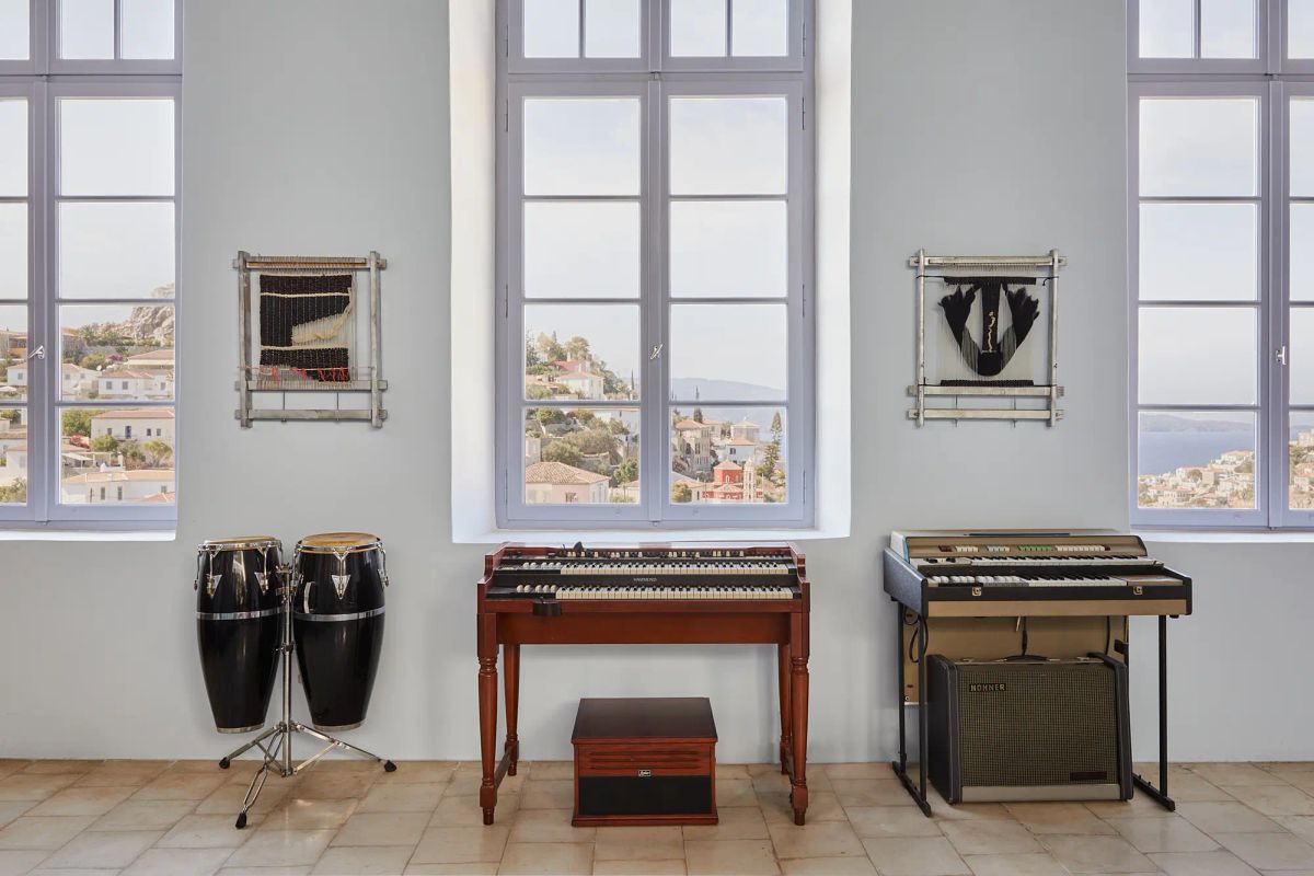 His platforms showcase both emerging and established artists from Greece and globally, often in the old Hydra High School building.