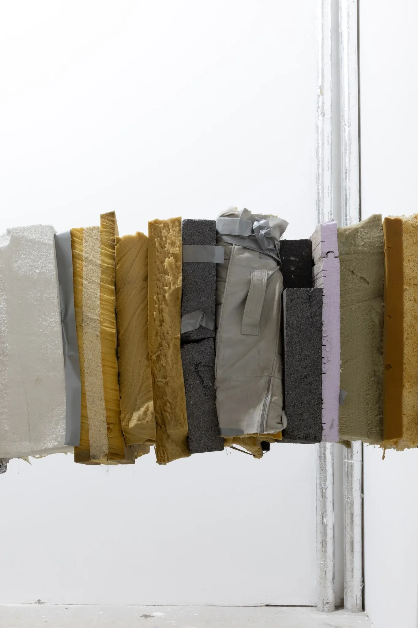 Stijn ter Braak Pit, 2025 200 × 110 × 110 cm Wood, paper, isolation foam, glue, acrylic paint, plastic foil, cardboard, spray paint, tape - Installation view Call Someone - Group Exhibition ayayay, Frankfurt am Main 20 February – 15 March 2026