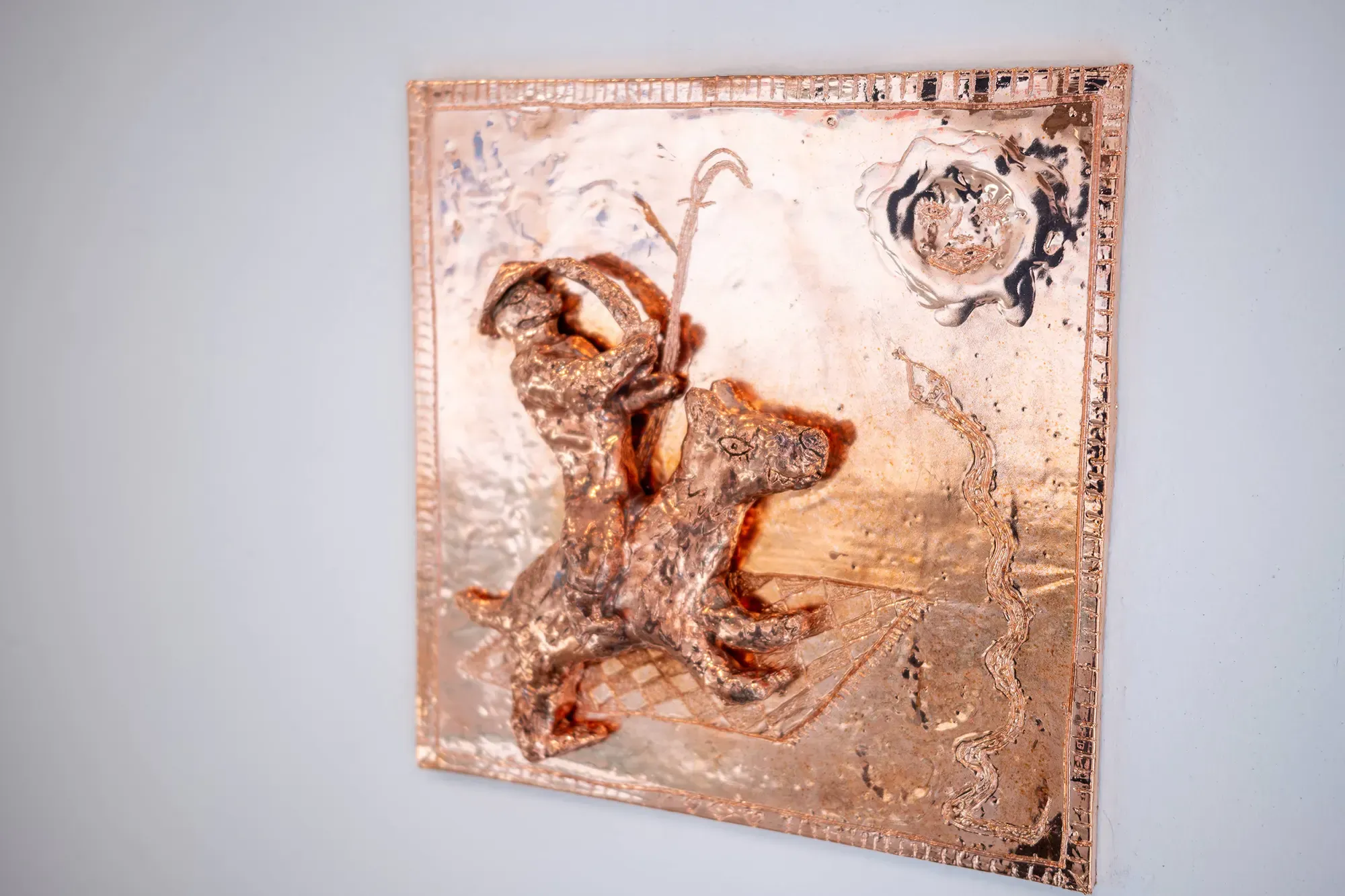 Felix Stöckle: l.) Le tigre veut jouer, 2024, Copper electro casting, Kunst(Zeug)haus, Rapperswil (CH) 33x33 cm r.) Sssssammel Sssurium, 2024, Lime colour, coked ceramic, Kunst(Zeug)haus, Rapperswil (CH) | Photo: Andreas Drosdz