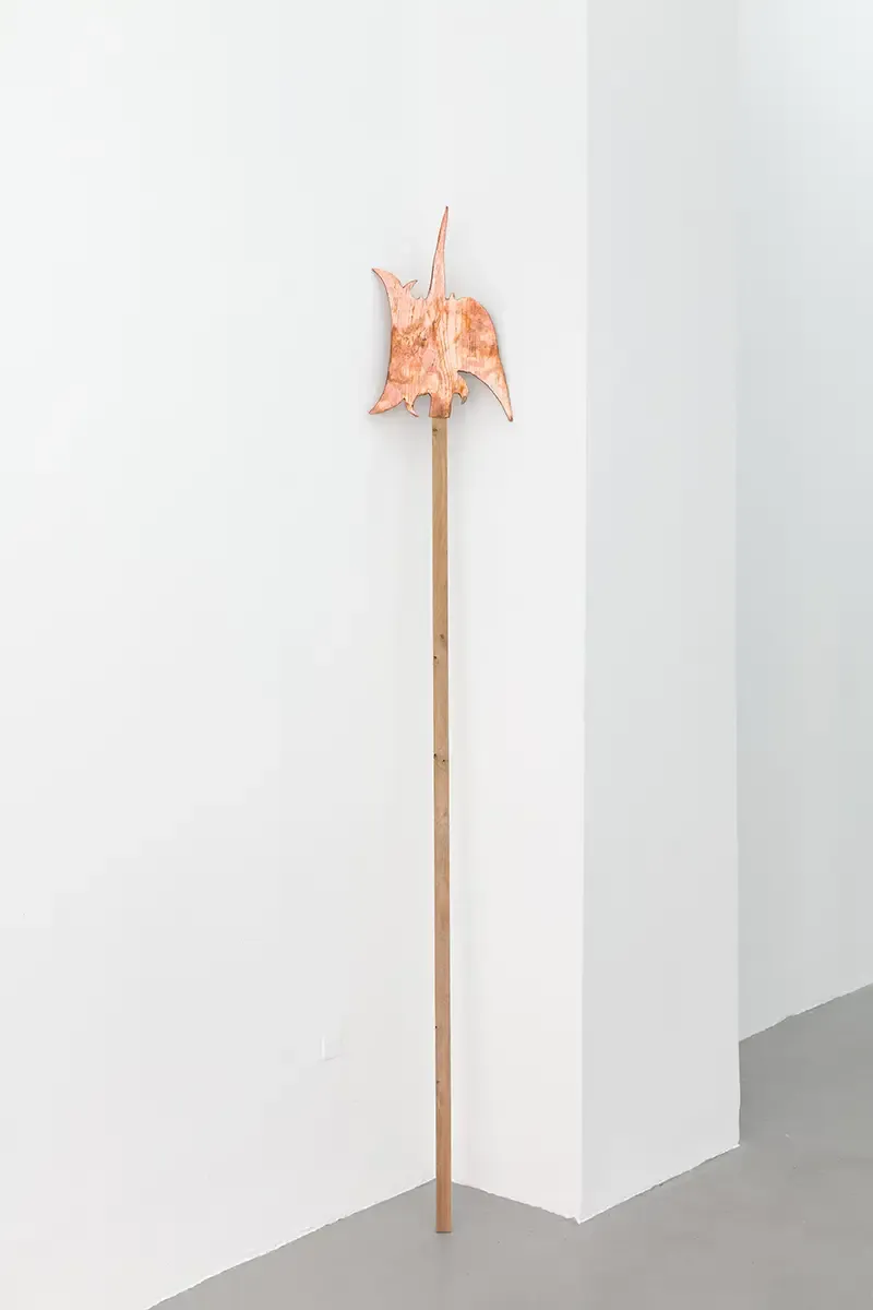 Felix Stöckle: left -> (right) Pontifika Foto Made by: Johannes Bend-zulla | right -> Pontifika & Gladiatoren im Schlund, 2023, Copper casting, 190cm & 44cm x 50cm AURA Düsseldorf / ENTER Art Fair Copenhagen (DE)/(DNK)