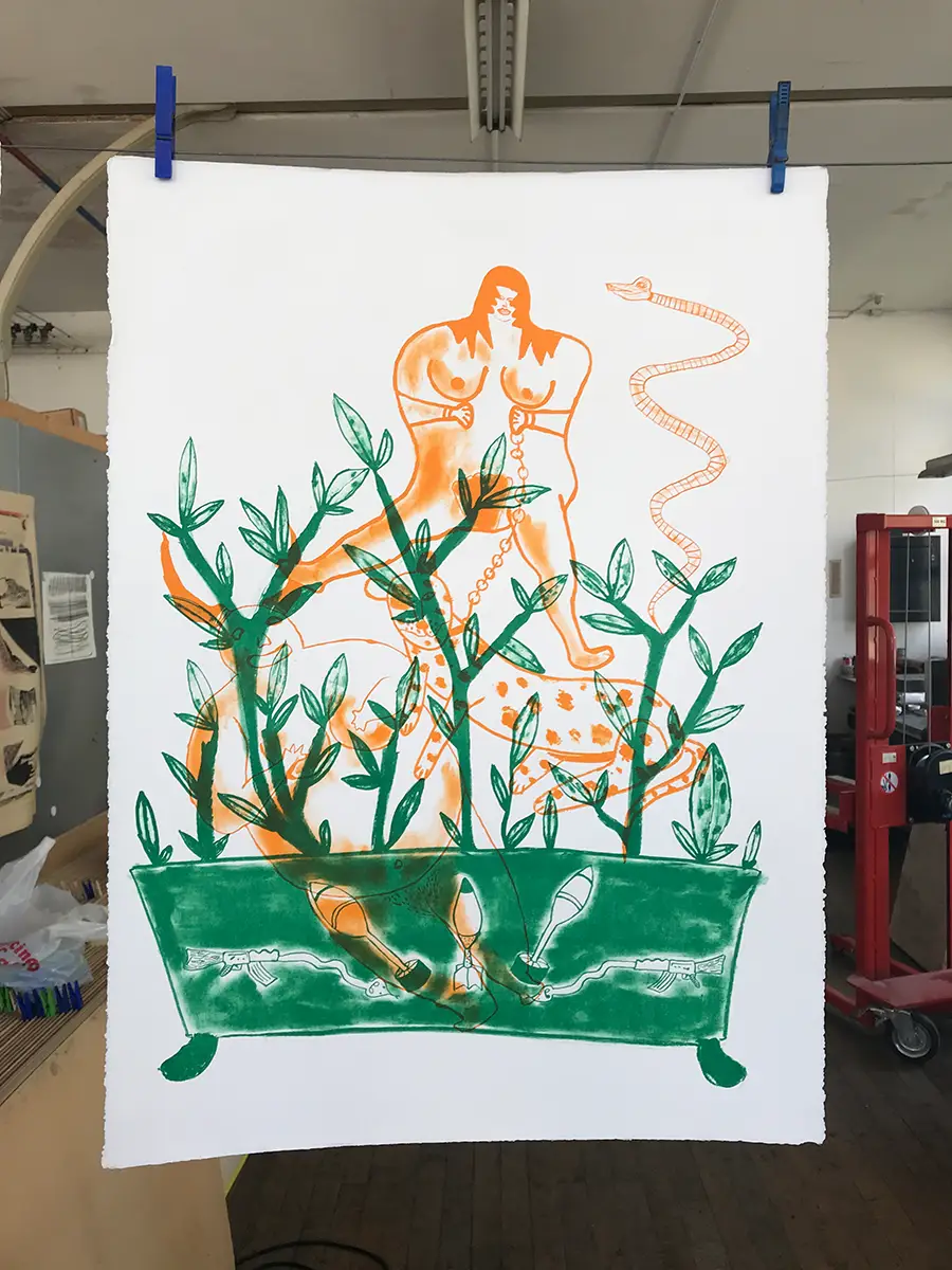 Earlier in the year, his work was also on display in PINK HAWK DOWN / MISS DMZ at KRONE COURONNE.
