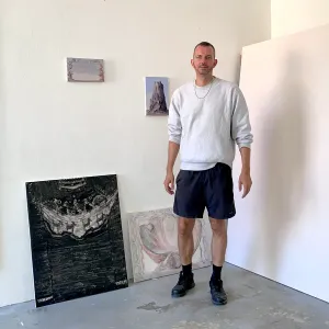 On view on the back wall âWakingâ by Gilbert & George (1984) "Waking" by Gilbert & George, where primal life forces of sexuality and religiosity unfold.