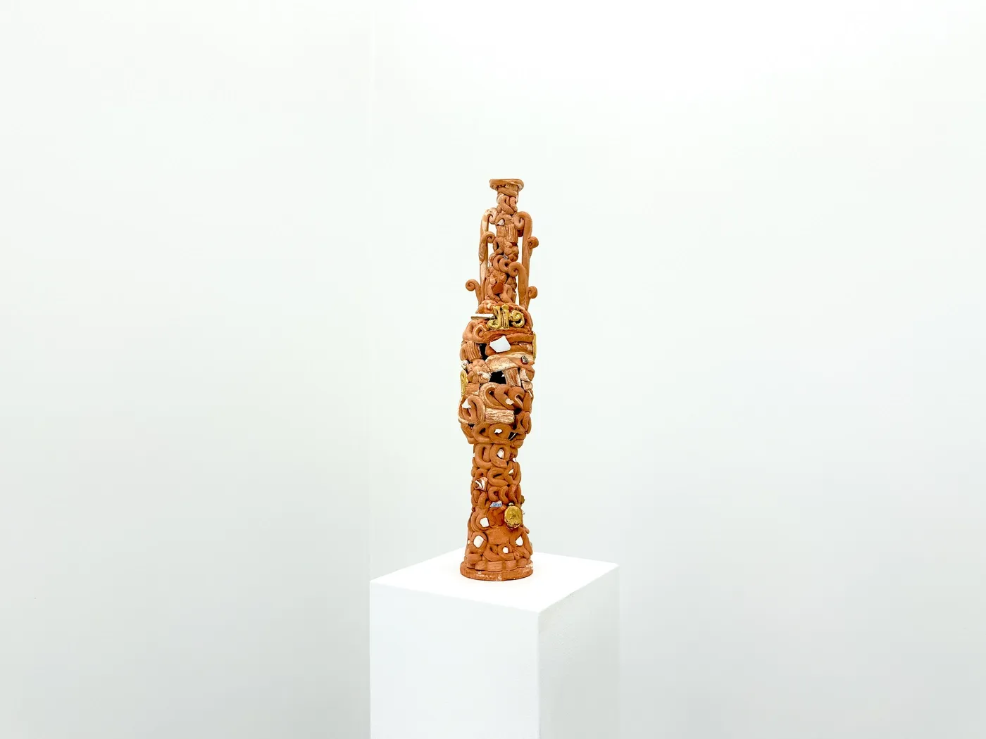 Barkley doesn't just reference this history. He embeds it. His new works include recycled pottery sherds, literal fragments of older vessels pressed into new forms.