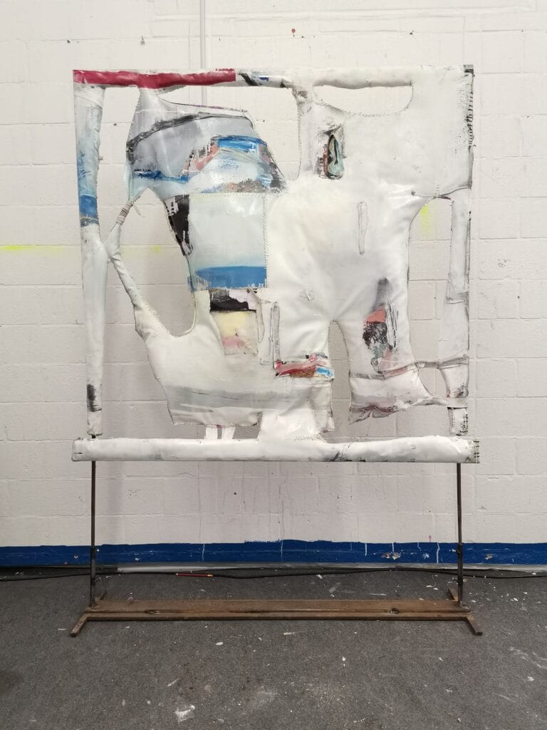 That is why everything I make is handmade, and therefore inherently imperfect. My monumental paintings proudly reveal wrinkles, soft bellies, rusty metals, worn-down materials, and the hidden beauty of the disposable and other abandoned remnants.