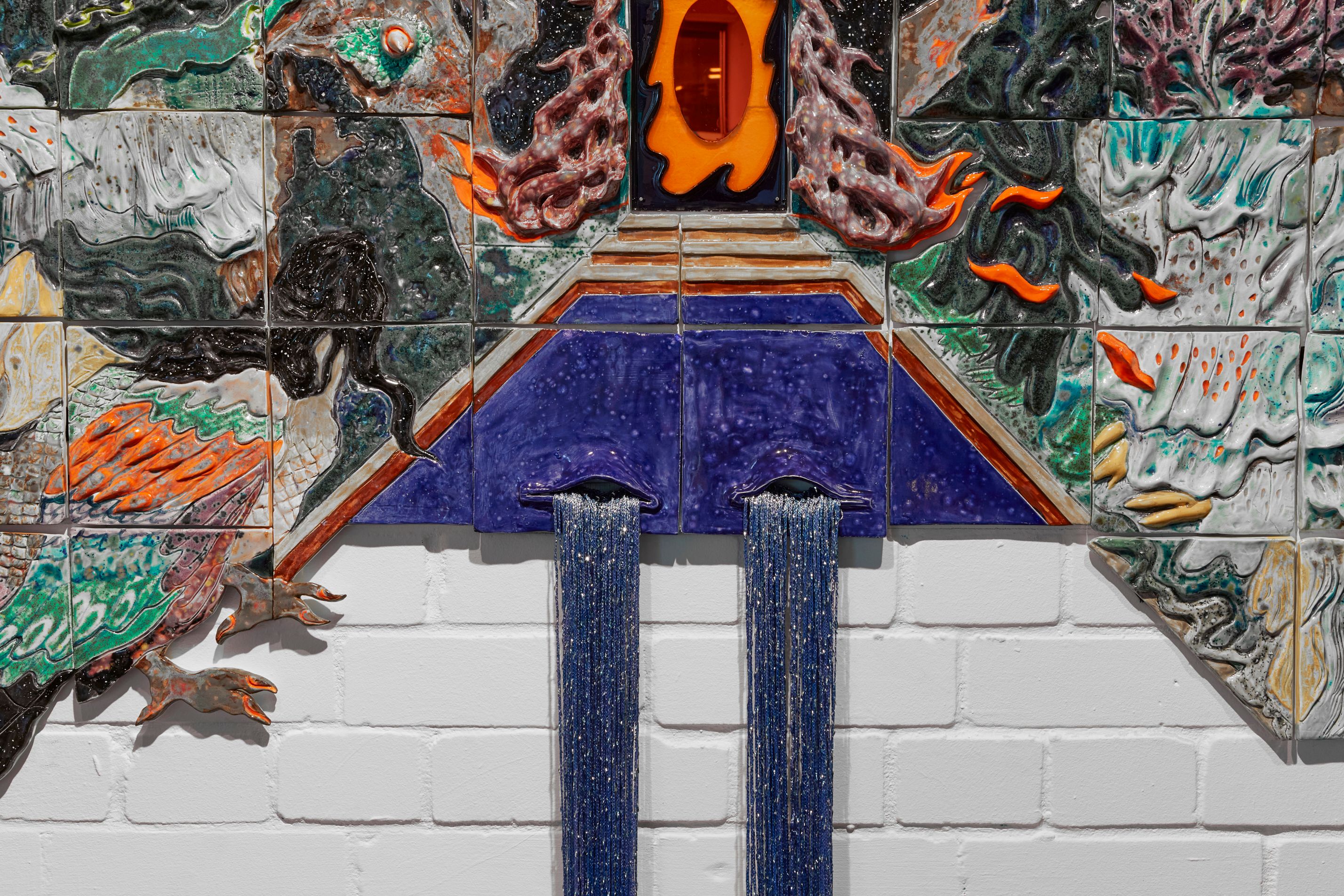 Her references extend beyond the autobiographical. Buddhist cosmology and natural science surface in the work, not as illustrations but as worldviews.