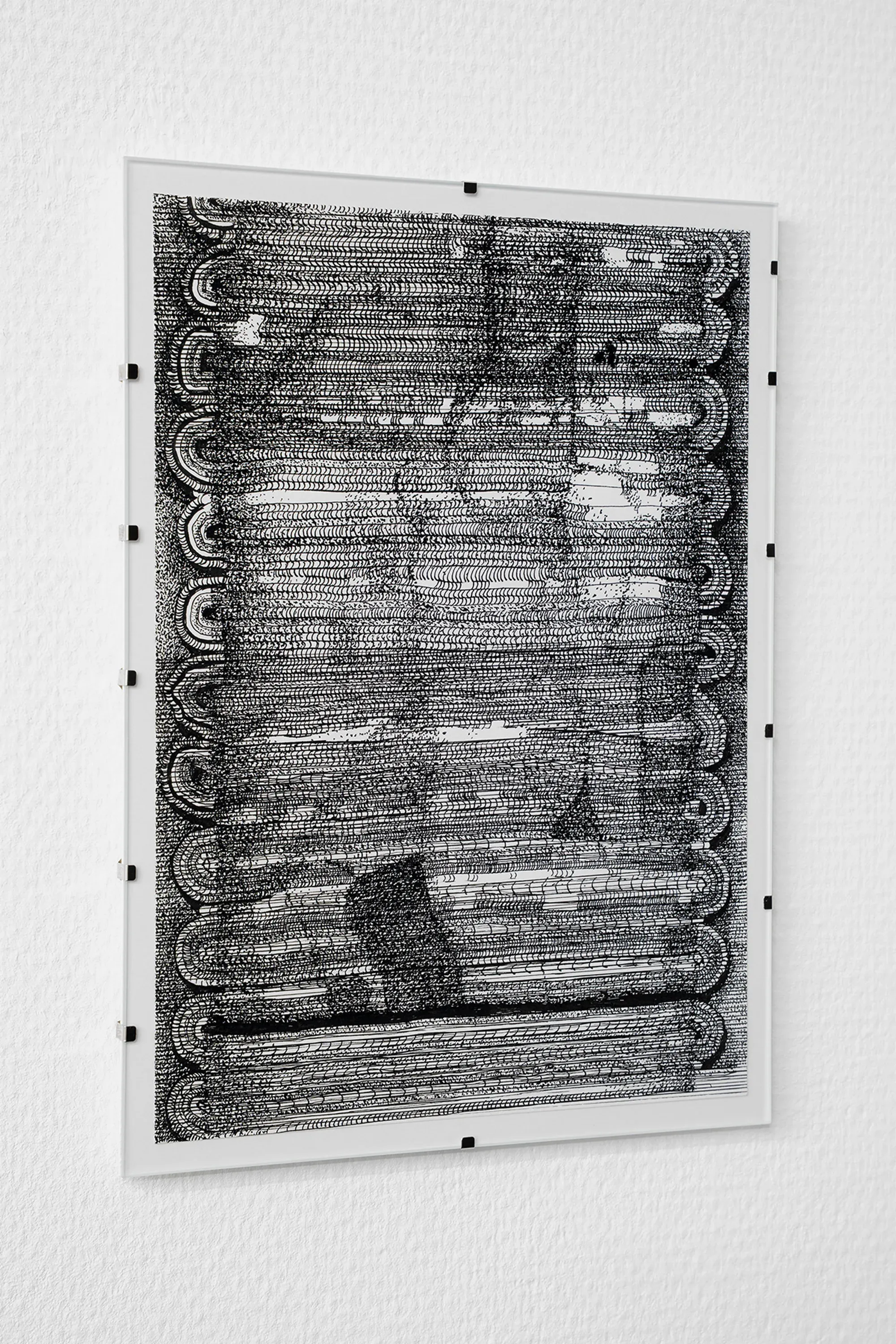Schücke uses this image as a structuring metaphor: the figure recedes behind the drawing's own density, but the gesture of capture persists, indifferent to legibility. A self-portrait dissolving into darkness is still, the series seems to argue, preferable to no self-portrait at all.