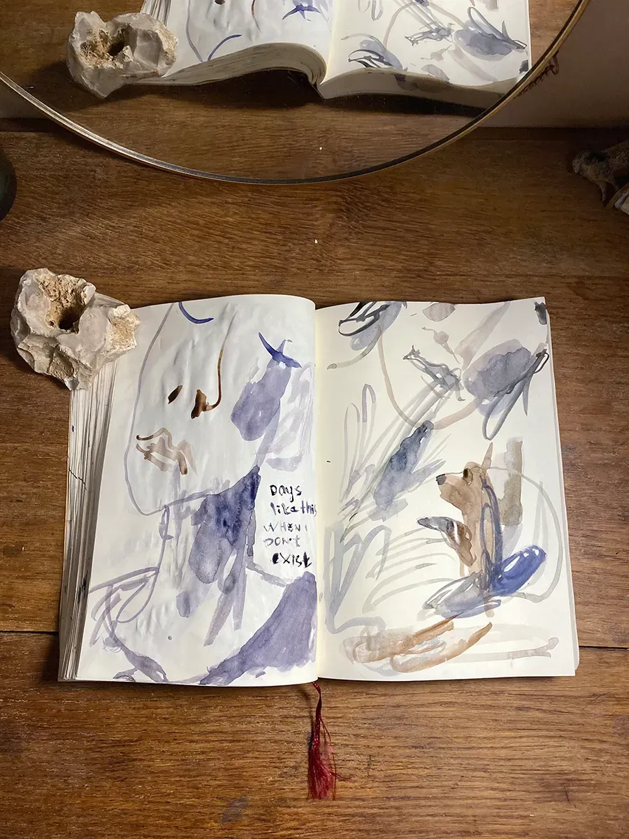 Through her ongoing diary-keeping practice, Katya offers glimpses into her inner world, encapsulating emotions through watercolor drawings and short notes.