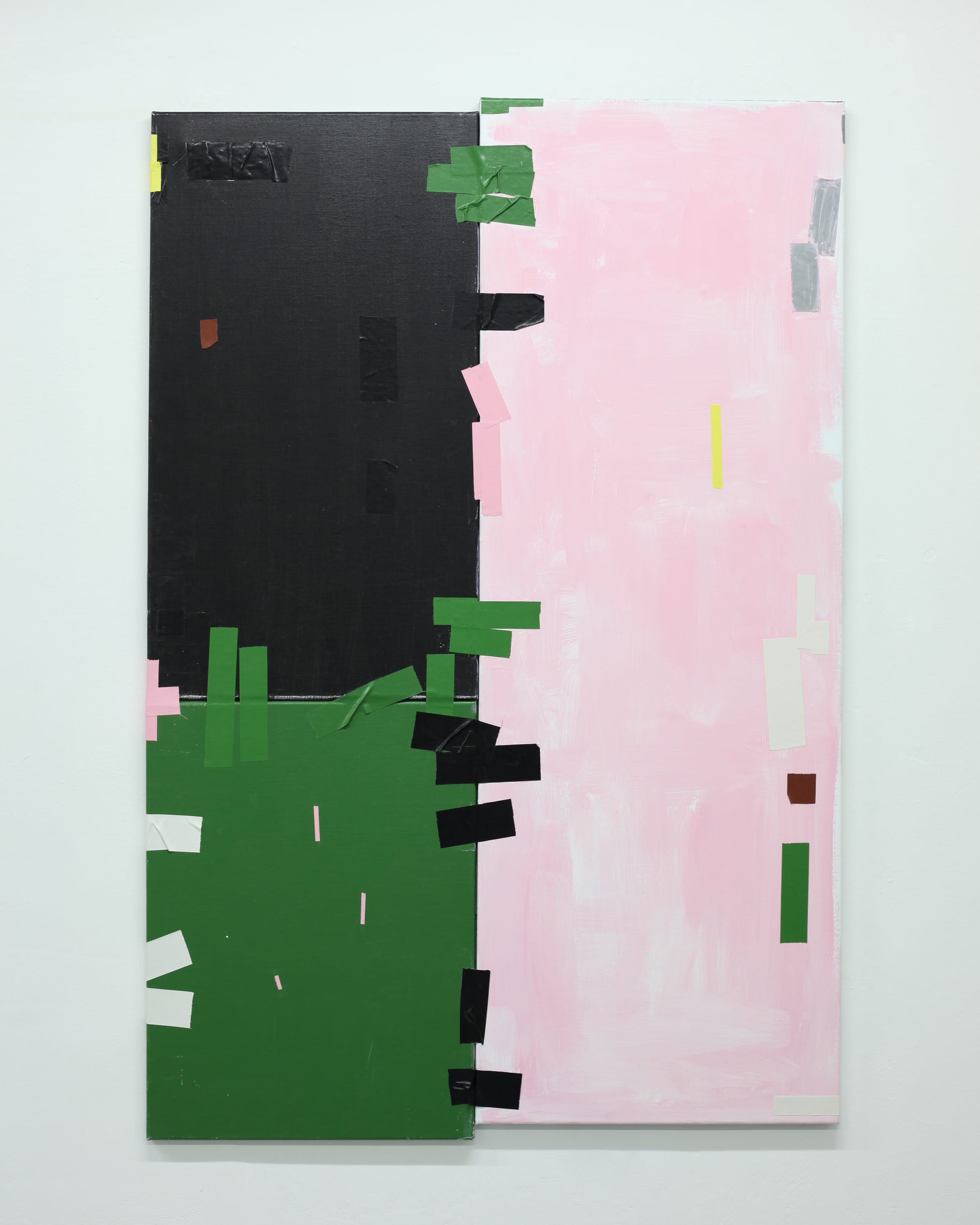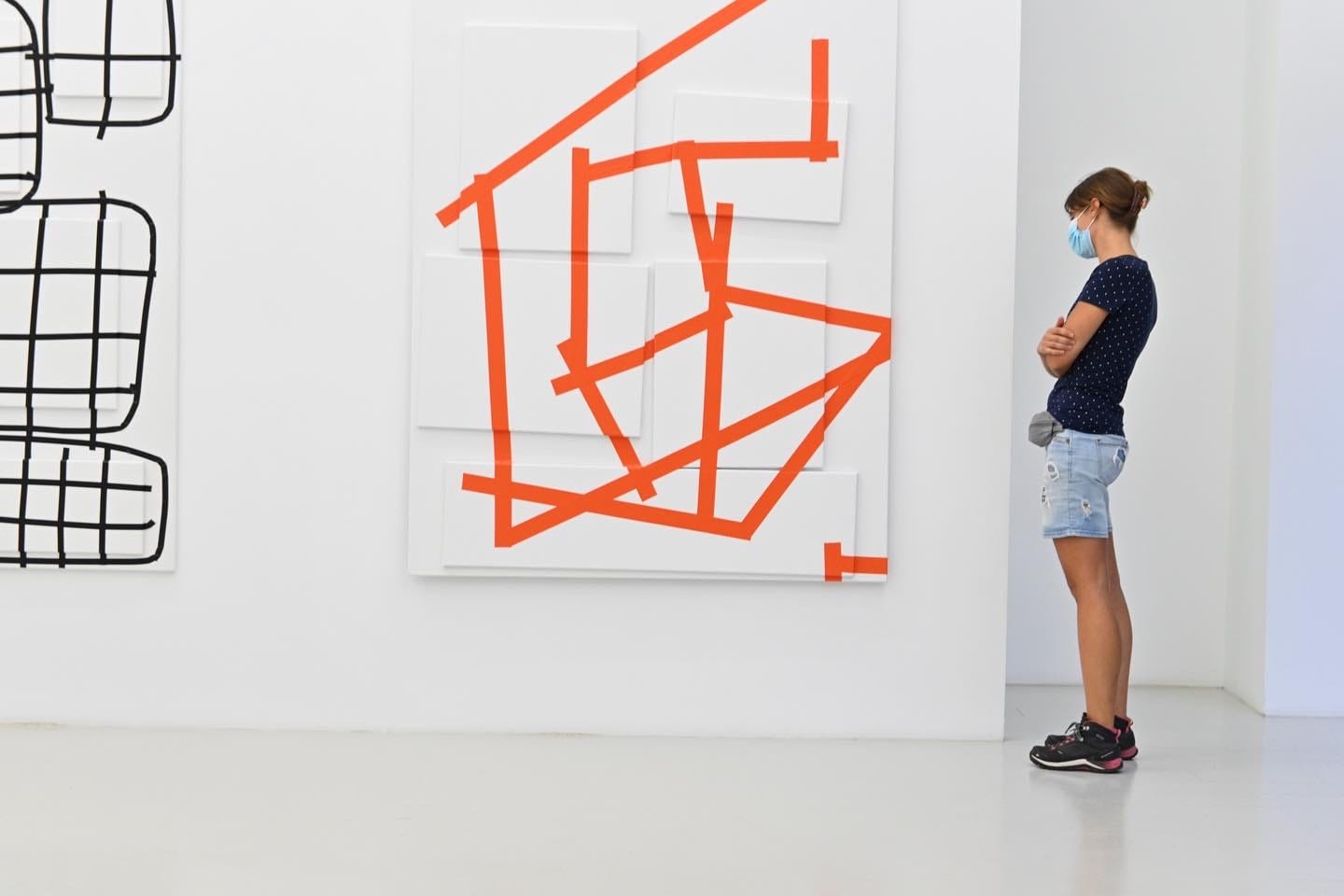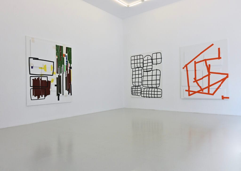 Tape allows me to reinvestigate painting without being a painter. In these works, tape is a reference to paint and abstract image.