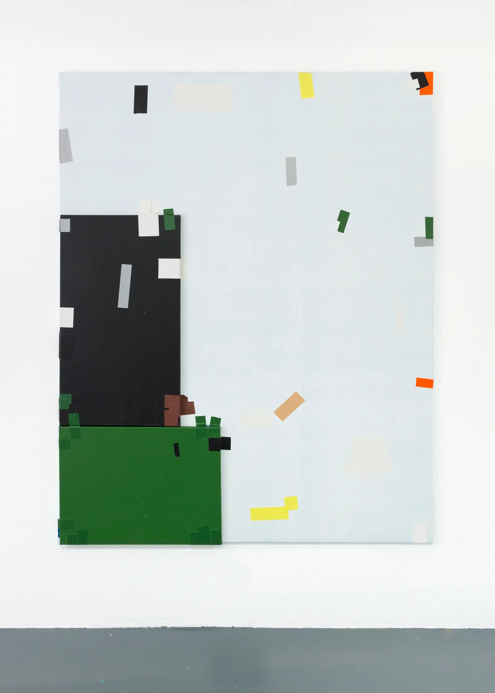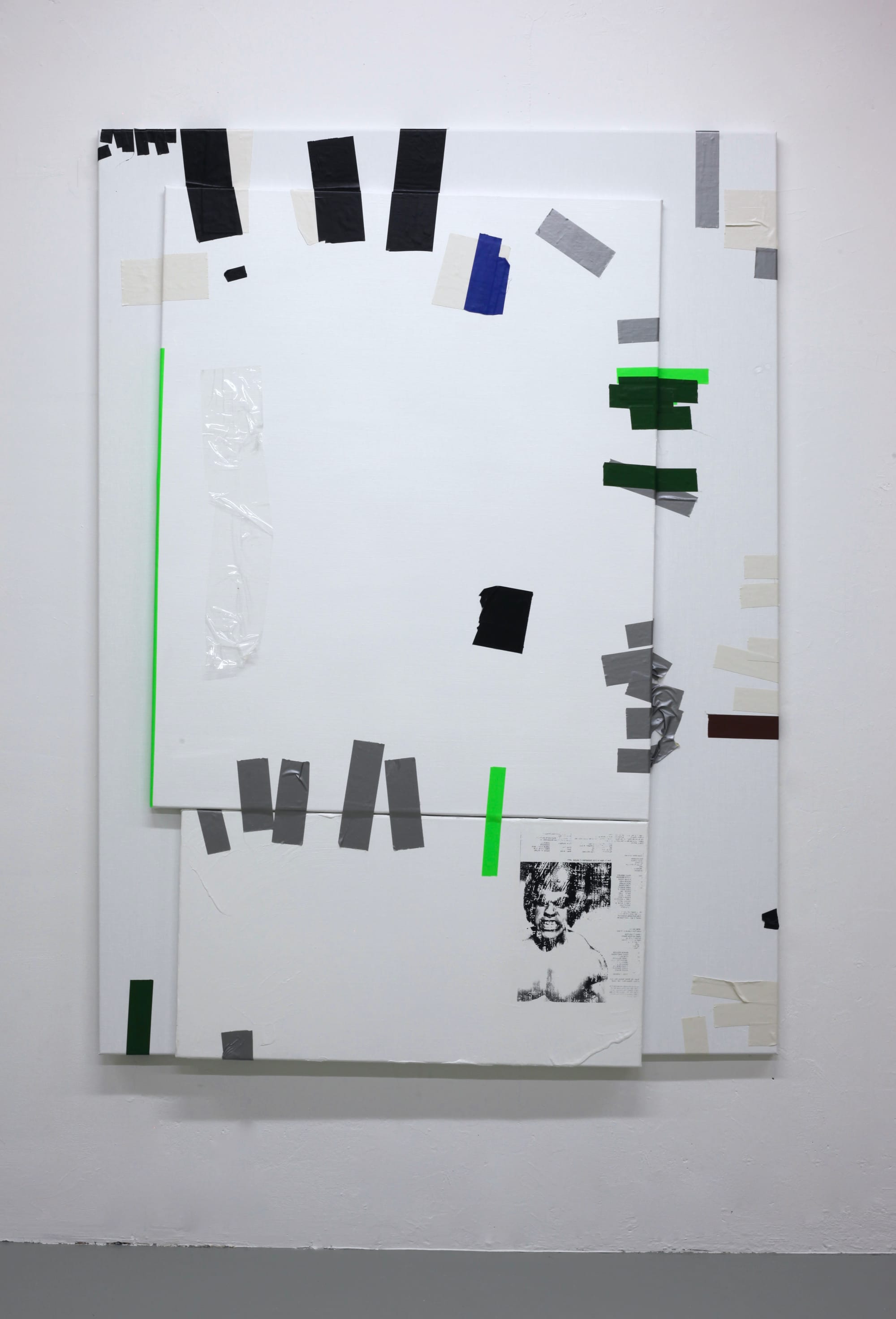 Therefore the Taped Paintings remain in this ambiguous state, in which artistic gestures intersect with pragmatic actions - sticking individual canvases together.