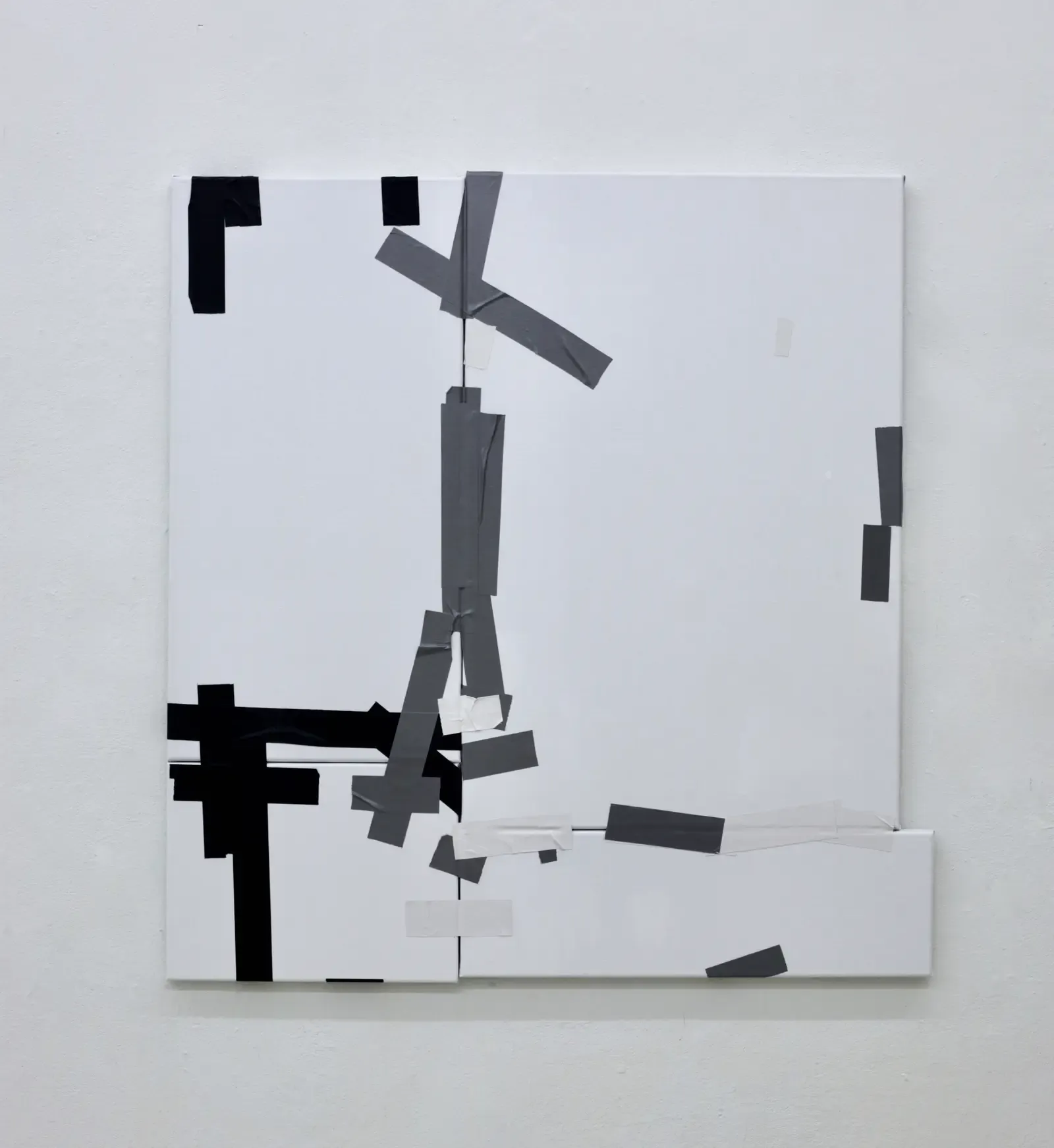 In series such as Taped Paintings, Hutsch uses adhesive tape not merely as a functional element, but as an integral part of the artwork, transforming what might be seen as temporary into a permanent structure.