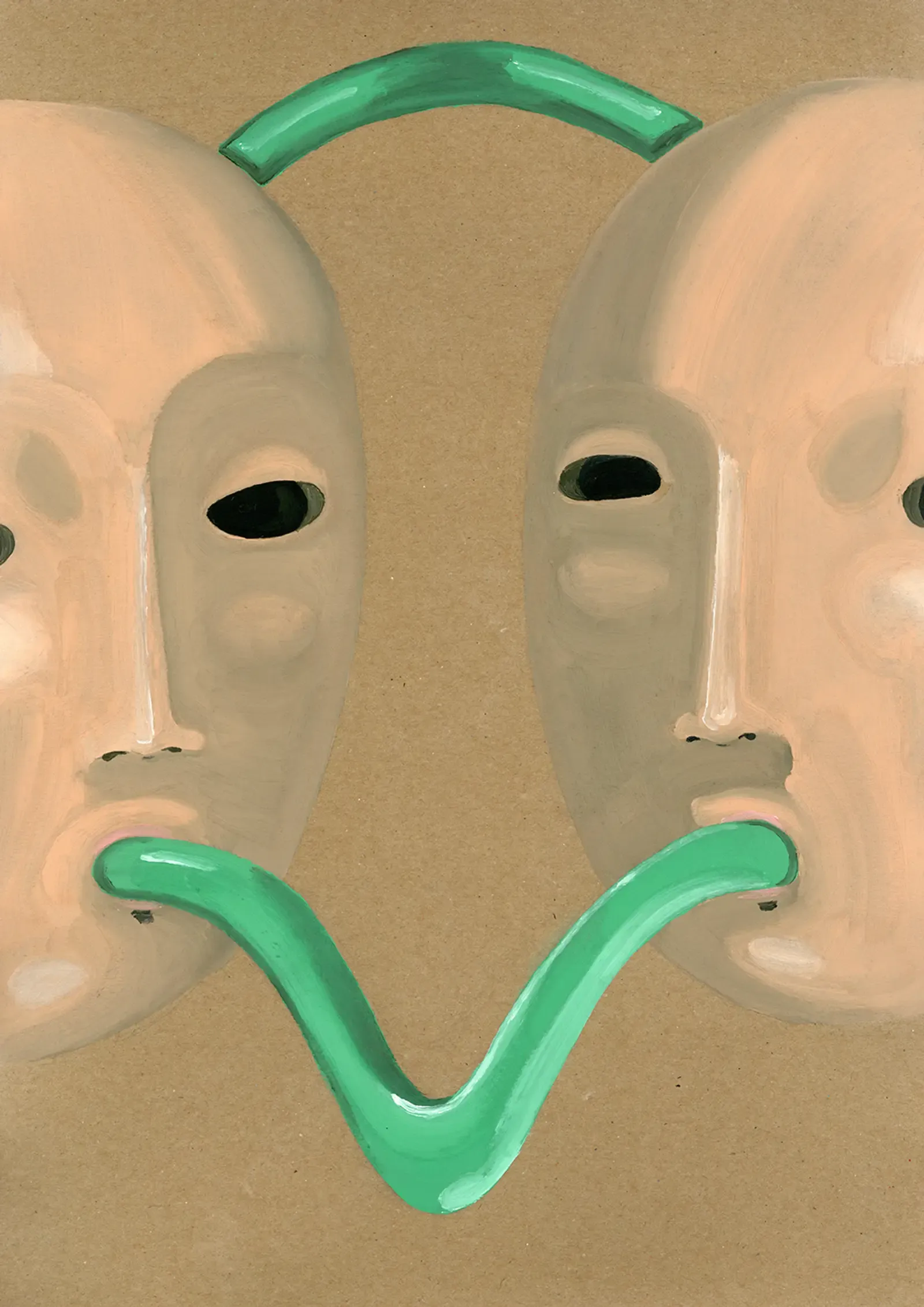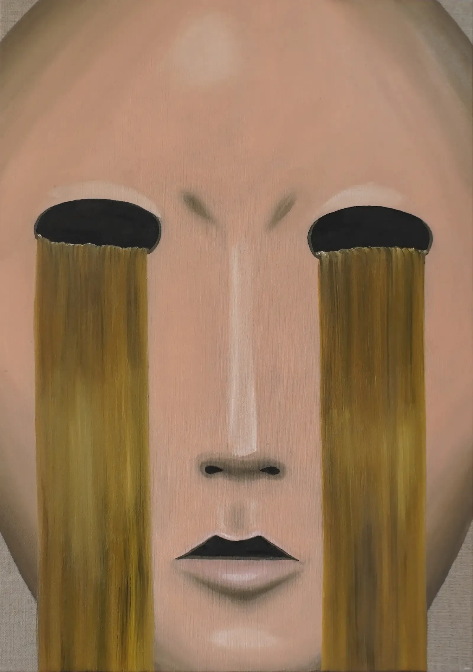 Lisa Klinger’s paintings don’t suggest. They deliver. A mouth pressed into a mechanical grin. A mask not worn, but fused.