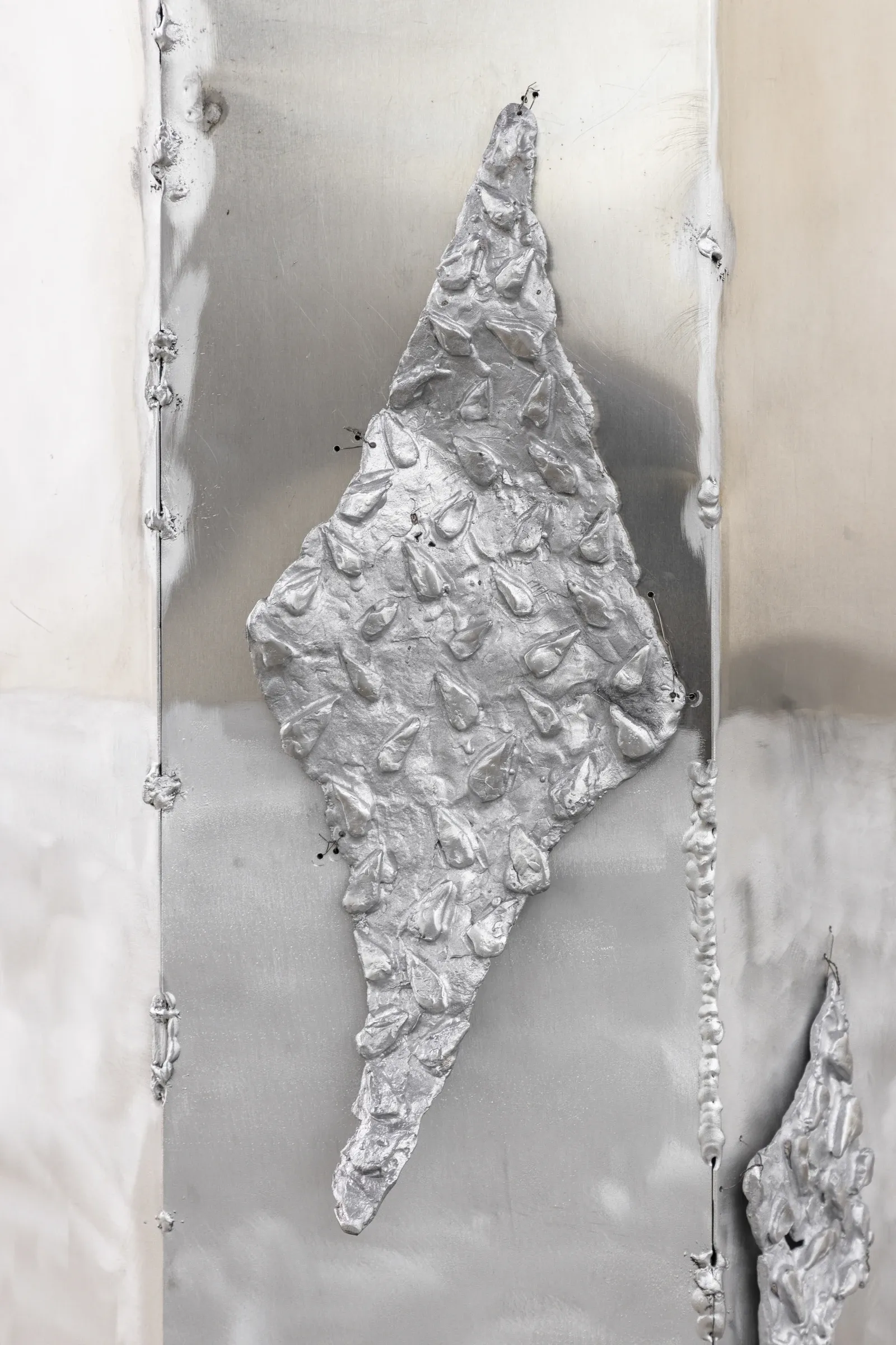 In her Hard Shoulders exhibition, Maija Fox addresses the relationship between our culture, labour, and the individual. Her large sculptural installation is mainly constructed out of aluminium and steel and is an interaction with the gallery space and its architectural elements.