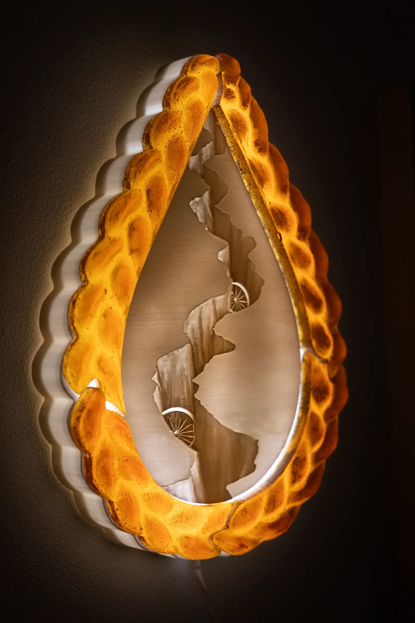 Martha Kicsiny: Field Fallow (left) and Domain Schism (right), 2025. Backlit lithophane sculptures. Image courtesy the artist.