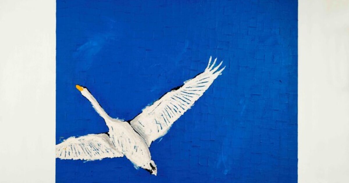 n this captivating work, Martin Paaskesen blends simplicity and symbolism. The composition features two swans, their necks forming a heart shape, rendered in white against a textured beige background. The meticulous layering of canvas pieces adds depth and tactile quality, while the vivid yellow accents on the swans' beaks inject a burst of color, symbolizing harmony and unity. Paaskesen's ability to evoke emotion through minimalist yet poignant imagery cements his reputation in the contemporary art scene. The close-up reveals the intricate detailing that characterizes his work, enhancing its visual and emotional impact.
