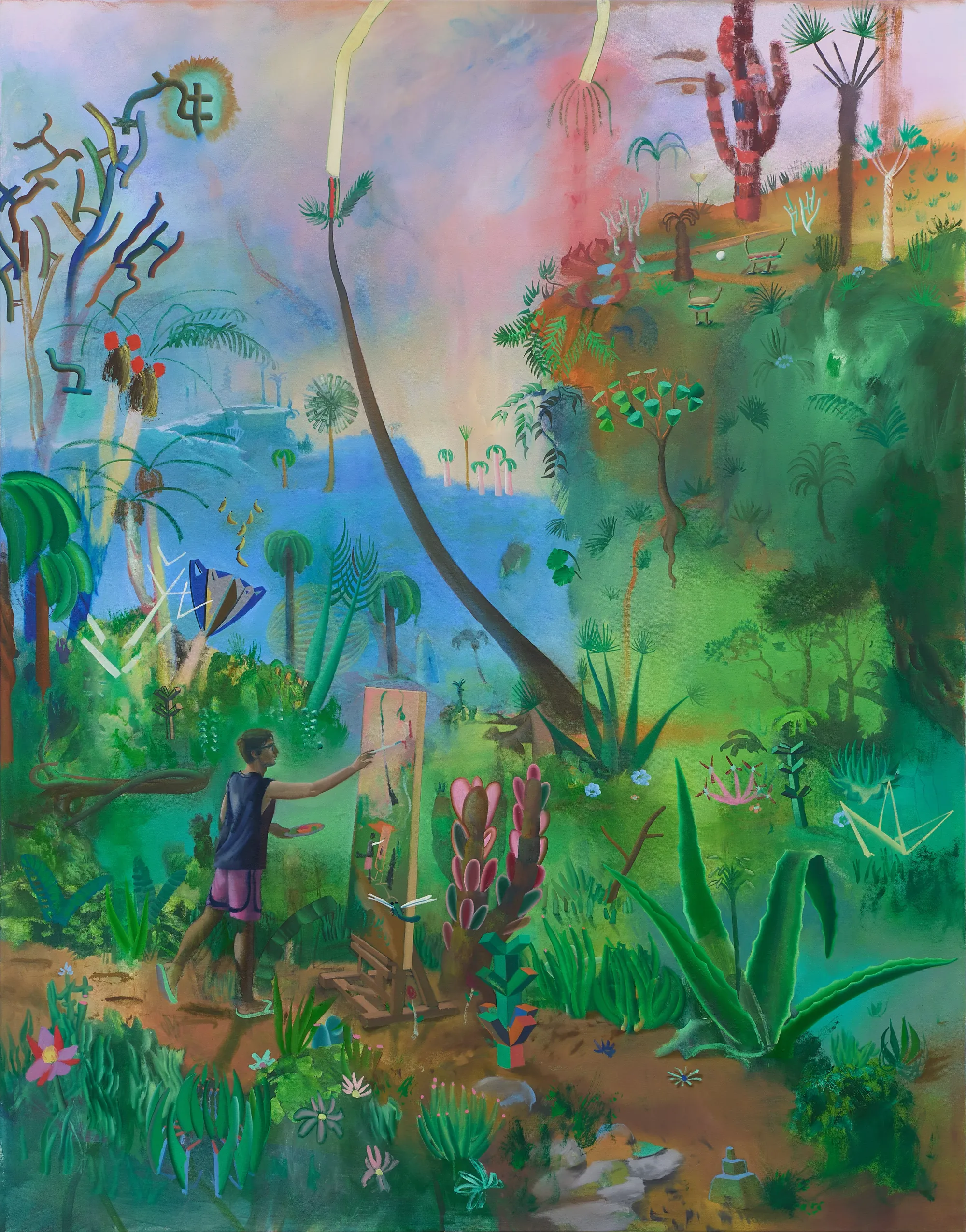 Schuster works primarily in painting. Layers build the image like a structure, not a gesture.