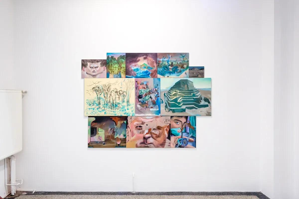 Martin Schuster: On the left: Freed from desire, 2023 and on the right: Okolyt with Real Estate painting. Foto Tom Dachs. Image courtesy of the artist.