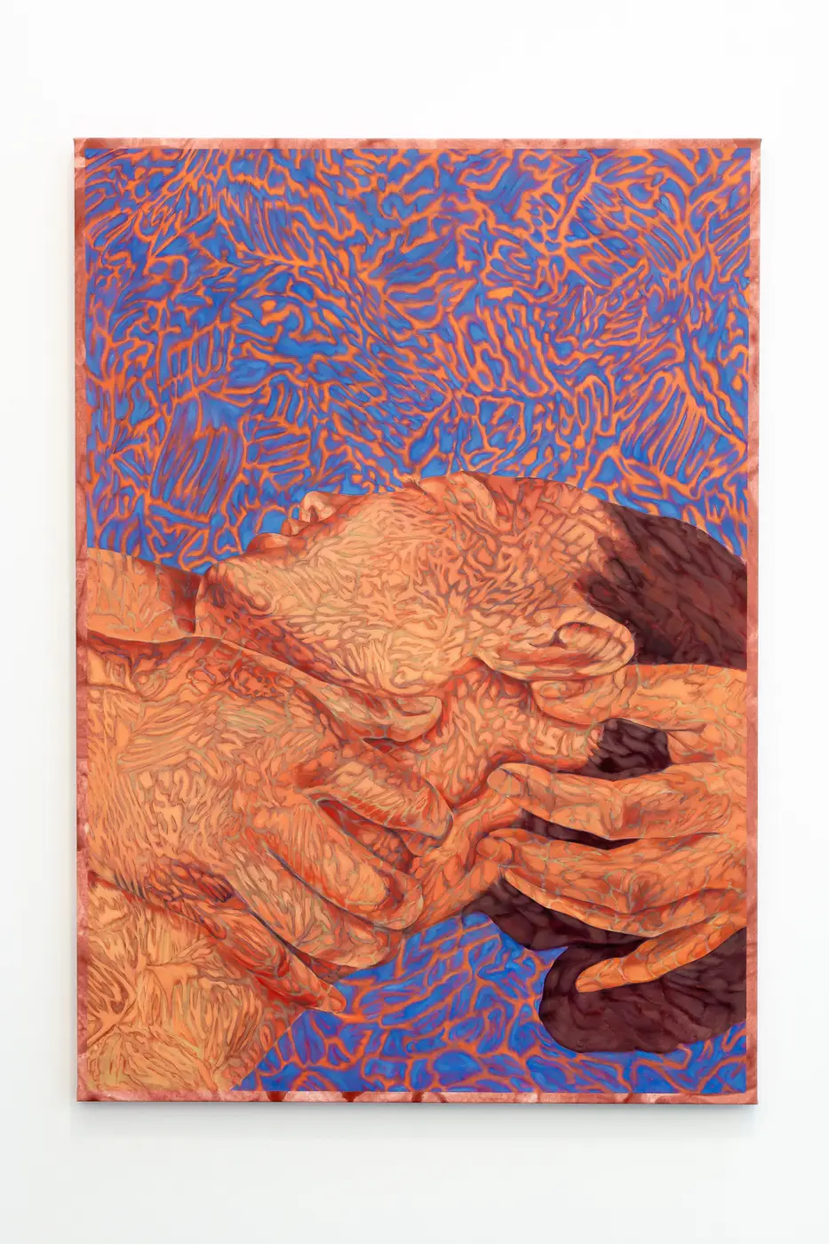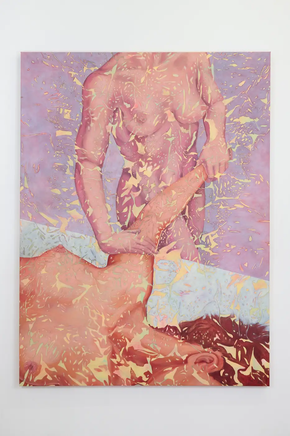 Minda Andrén, Pull it by the armpits (psychic massage), 2024, 120 x 90 x 3,5 cm, Oil and gesso on canvas | photo: (c) Jennifer Gelardo -> Minda Andrén, "7:23 AM, the most stressful time of day", 2023, Oil and pigmented gesso on canvas, 120h x 85w x 3.5 cm | photo: (c) Flavio Palasciano