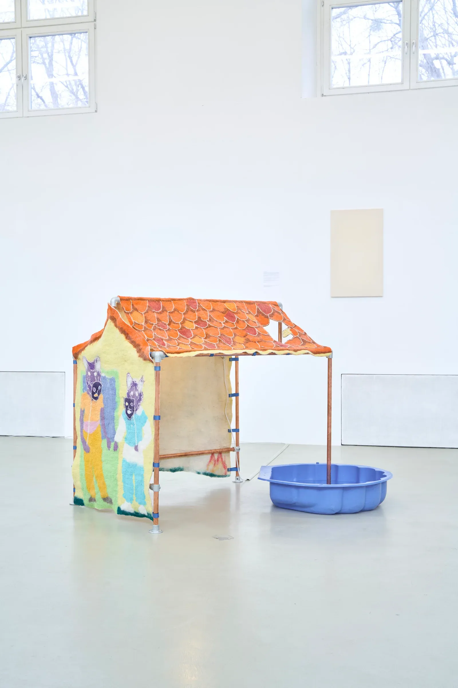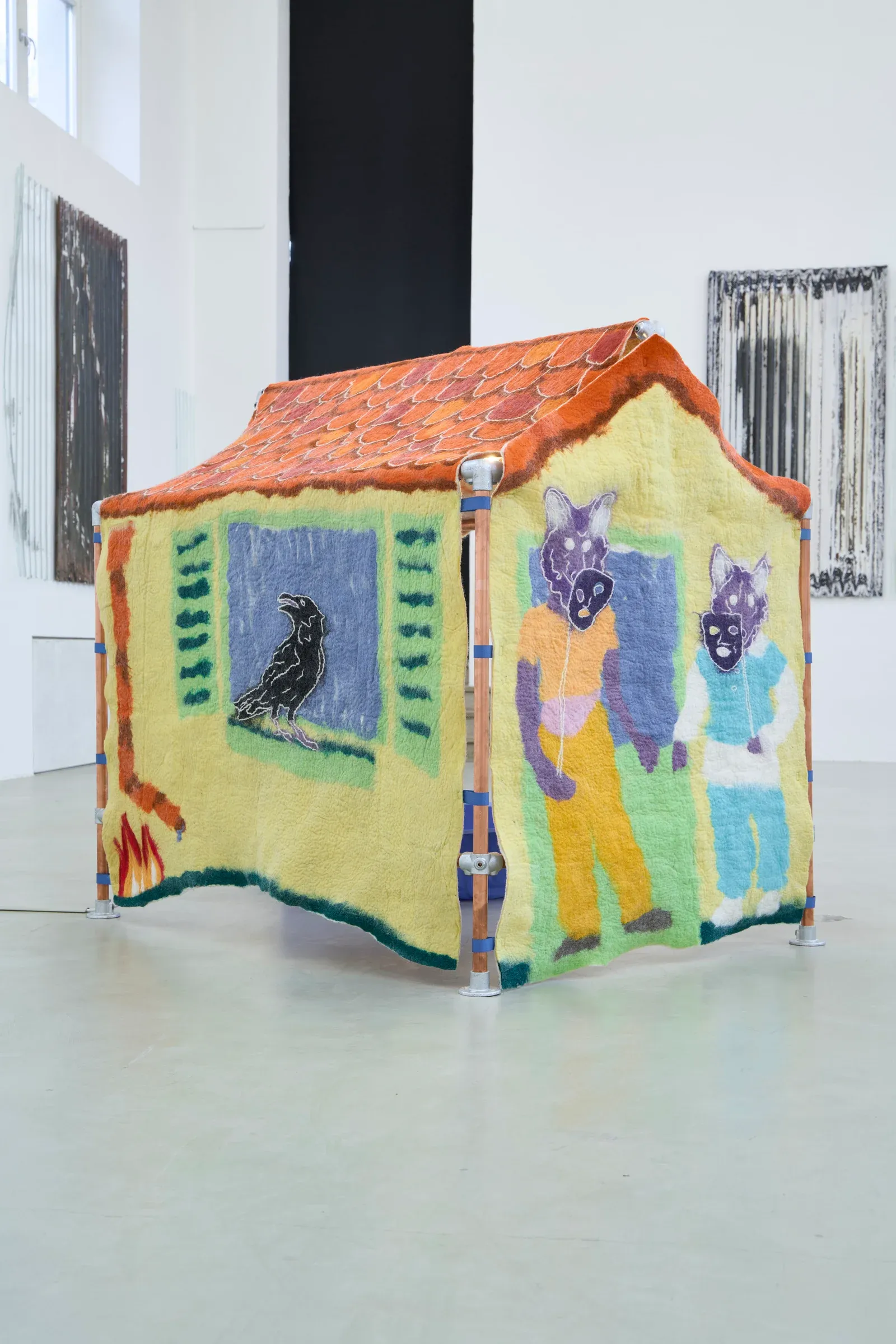 Pierre-Yves Delannoy: The Shell Cannot Land on the Playhouse, 2025, felt installation, 120 × 150 × 130 cm. Courtesy the artist. Photo by Milena Wojhan.