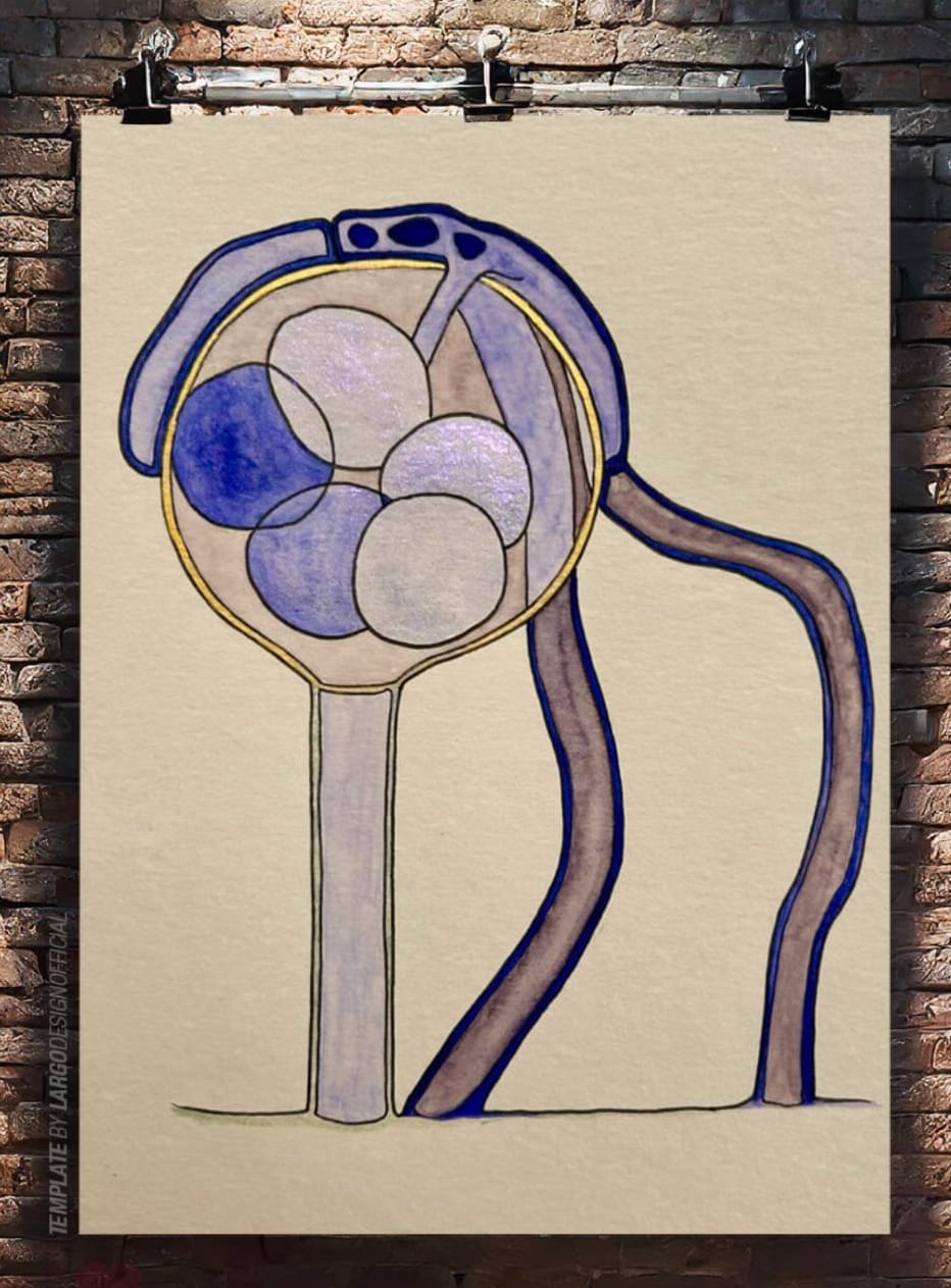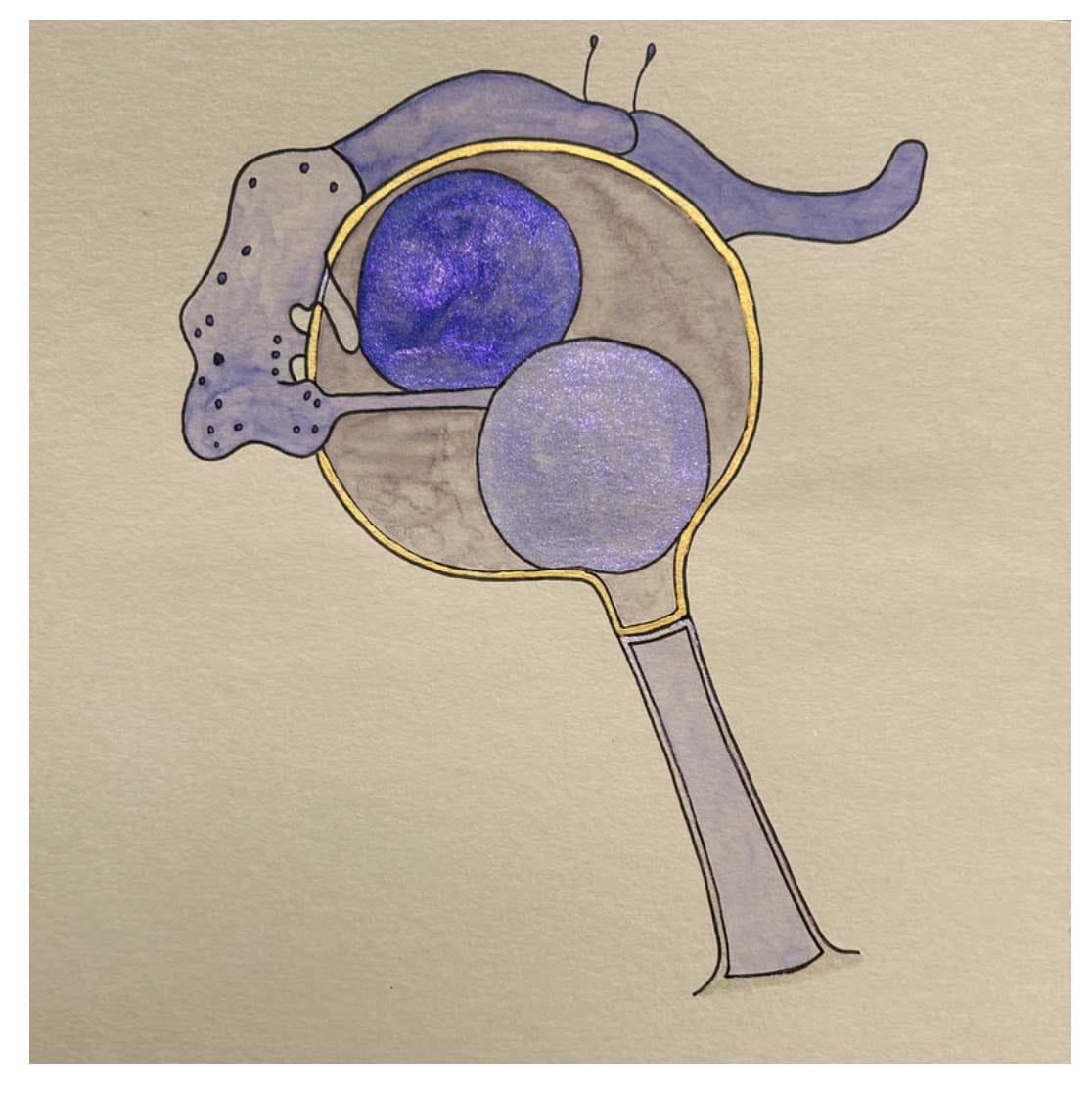 Rica Fuentes Martinez: "Mikropilz" Watercolor and ink on paper. Organic forms emerge as abstract anatomical structures, reduced to line, circle, and shimmering color. Images courtesy the artist.