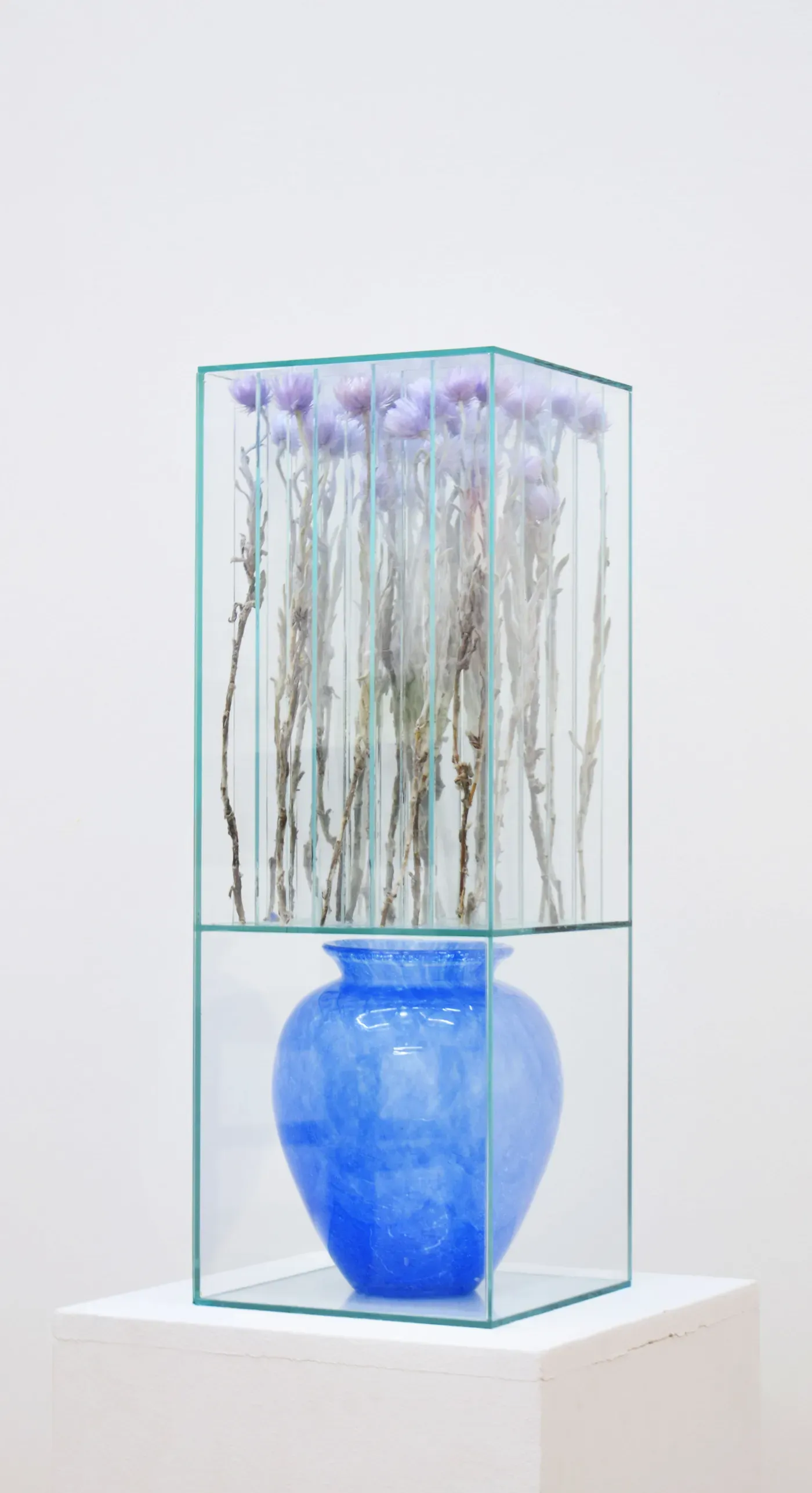 Körei often starts from everyday encounters with natural phenomena, fragments of plants, growth, decay, light, and transfers them into controlled sculptural systems. Glass plays a central role. It allows visibility while enforcing separation, turning observation into a conscious, slowed act. Nature in these works is not preserved or idealized. It is compressed, interrupted, sometimes stalled, existing somewhere between object and image.