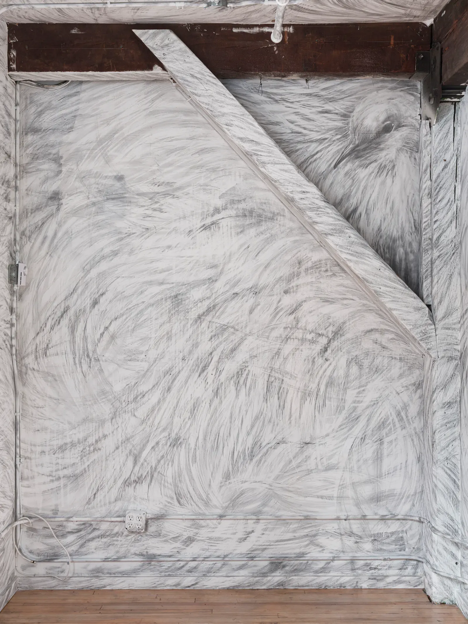 Seung-Jun Lee (b. 1998, Korea) is an artist based in Brooklyn, New York. His practice centers on large-scale drawing, often expanded into installation, where time, movement and everyday experience are compressed into dense visual fields. Rather than isolating single images, Lee accumulates marks, textures and gestures until they operate as a unified surface with internal pressure.
