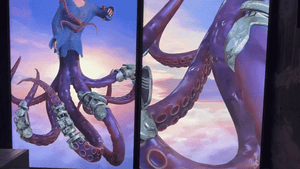 It's a clever nod to the world of cartoons and its unique language, masterfully crafted by the artist.